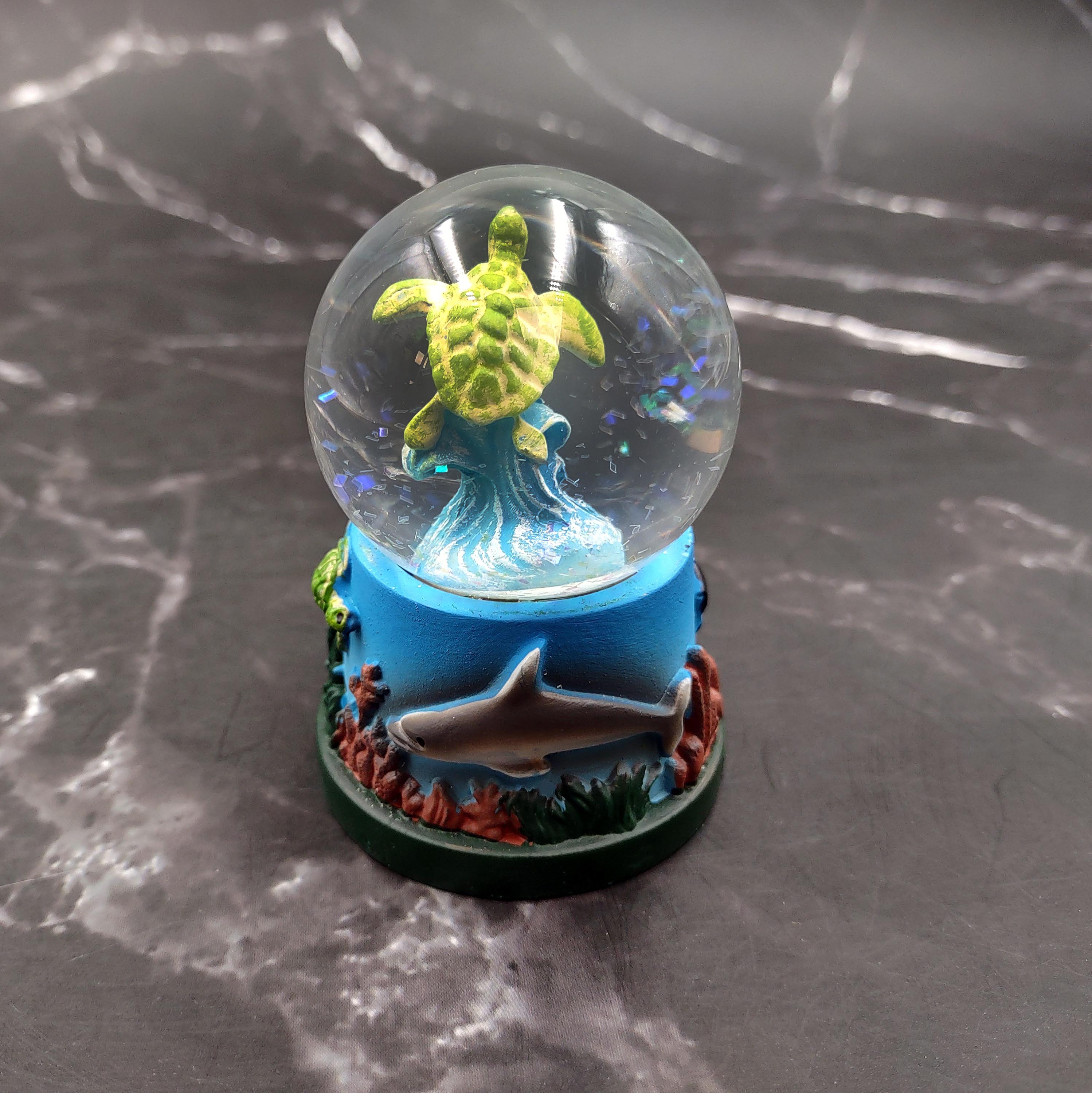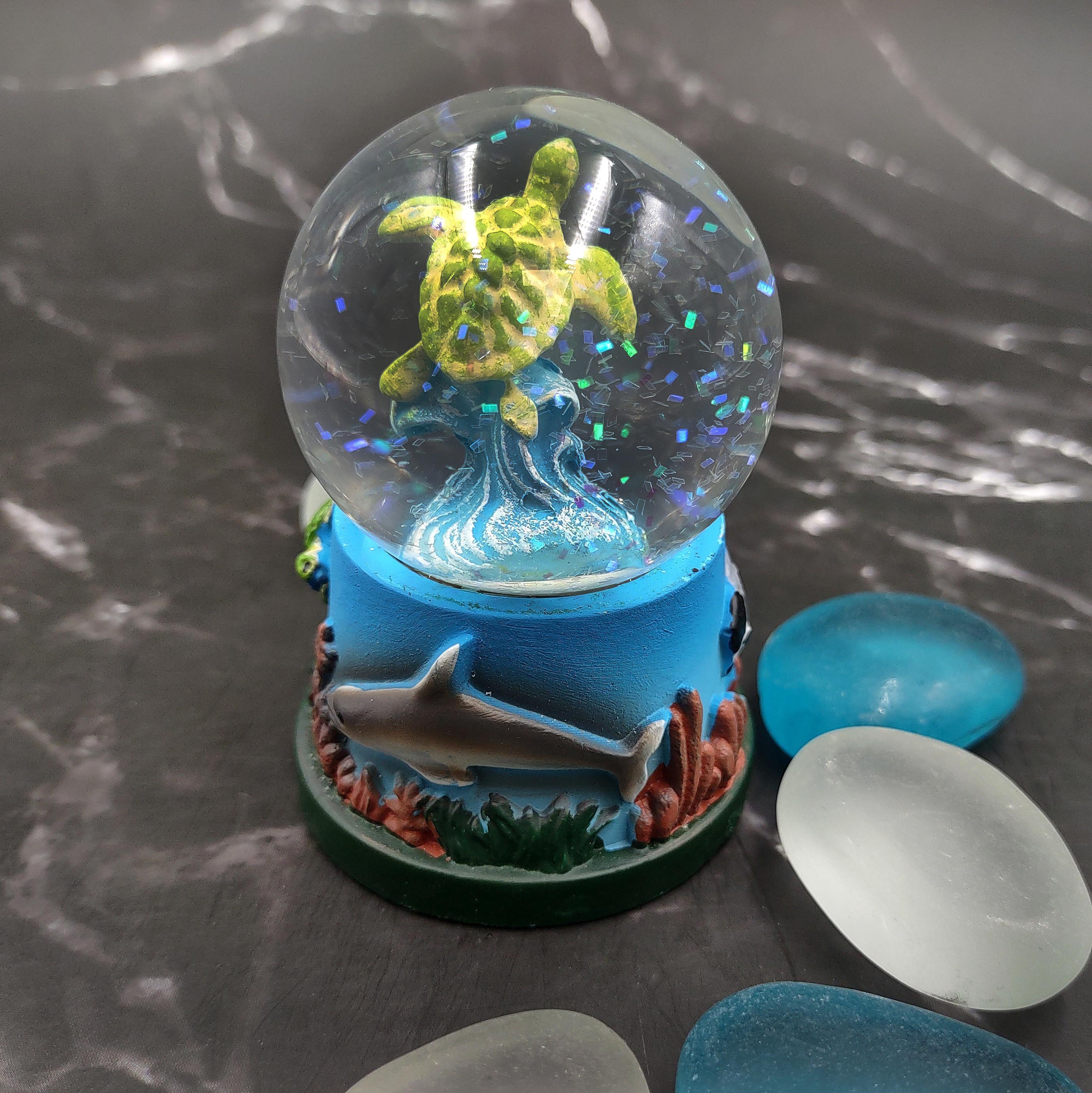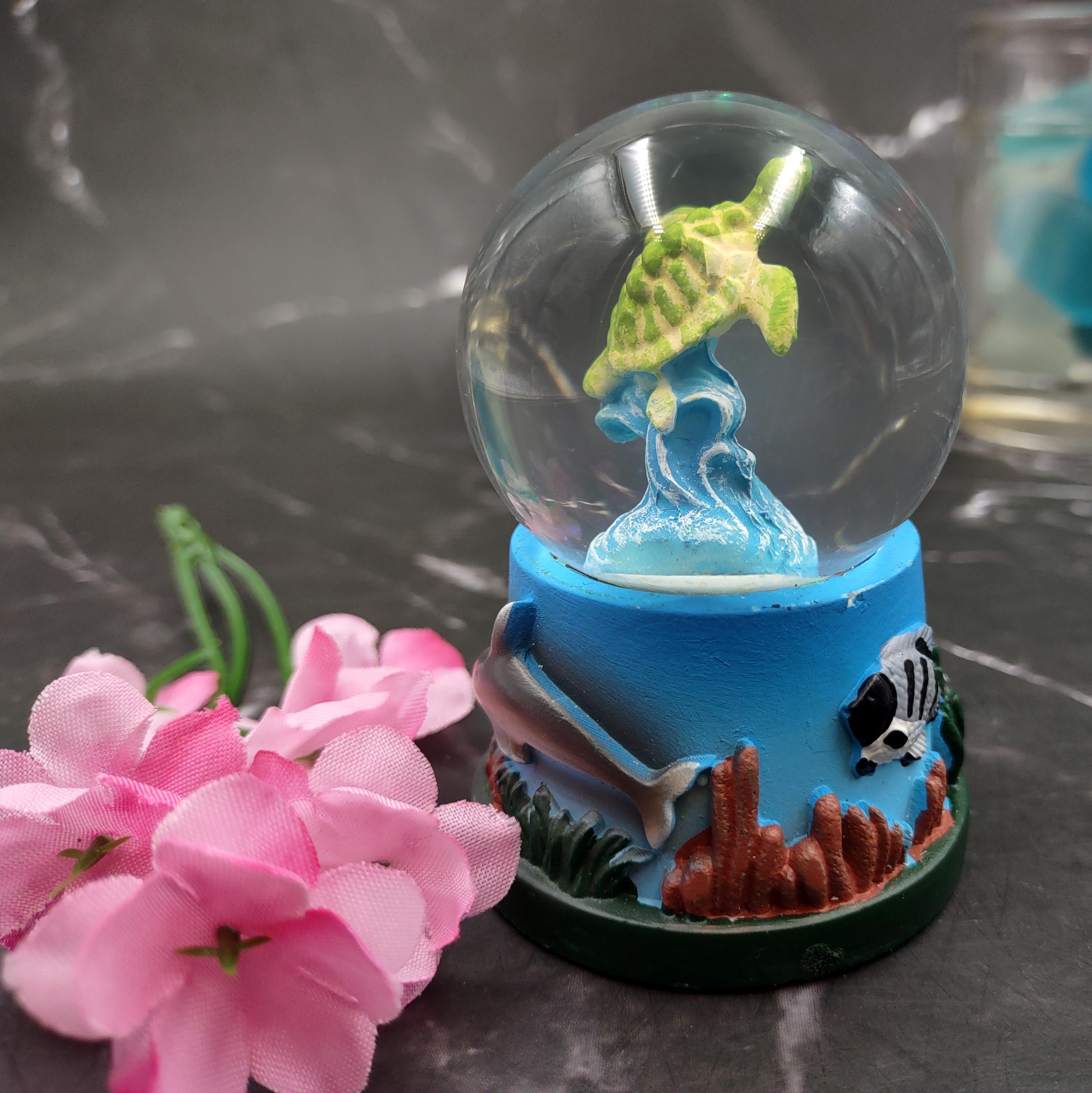 Small Sea Turtle Water Globe with Dolphin and Coral Base (1 globe approx. 2.75 inches tall) Cute Sea Turtle Water Globe for gifts & decor!