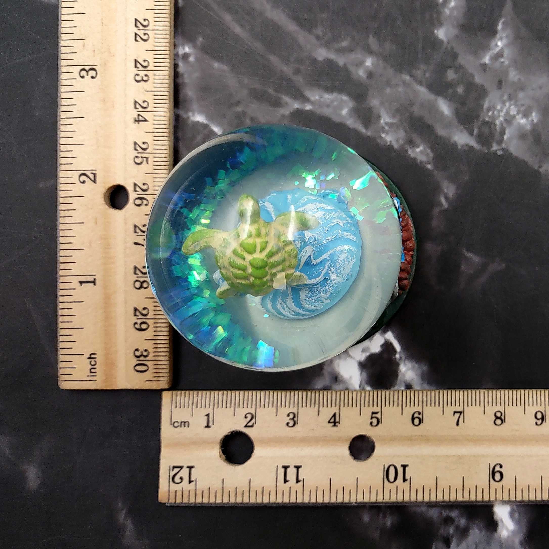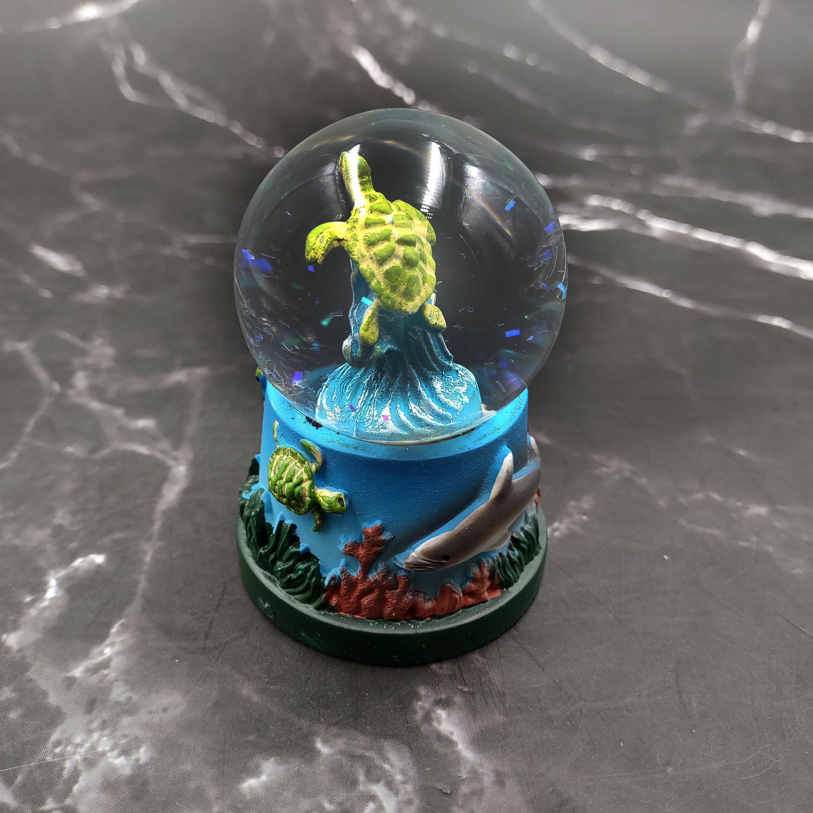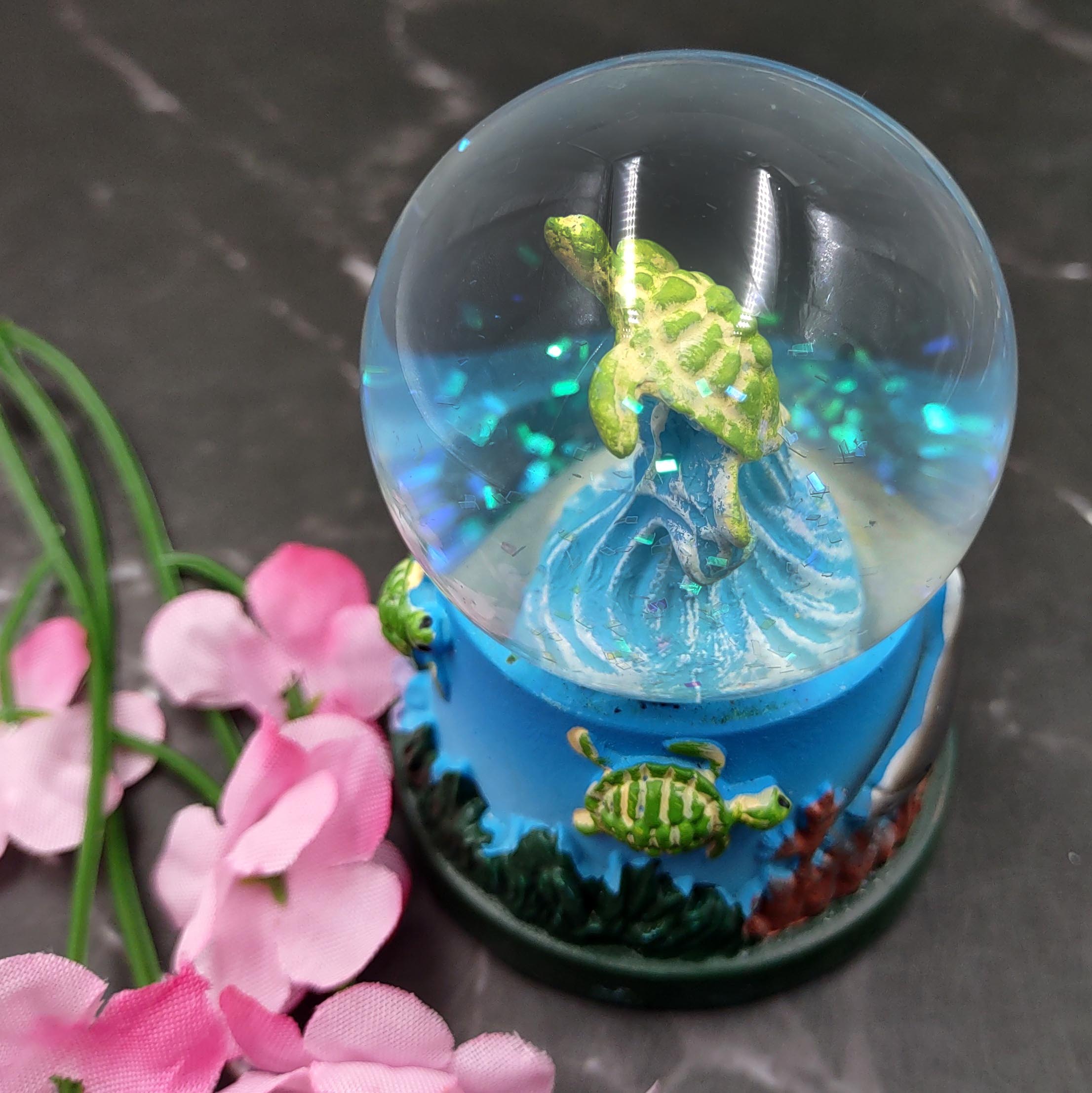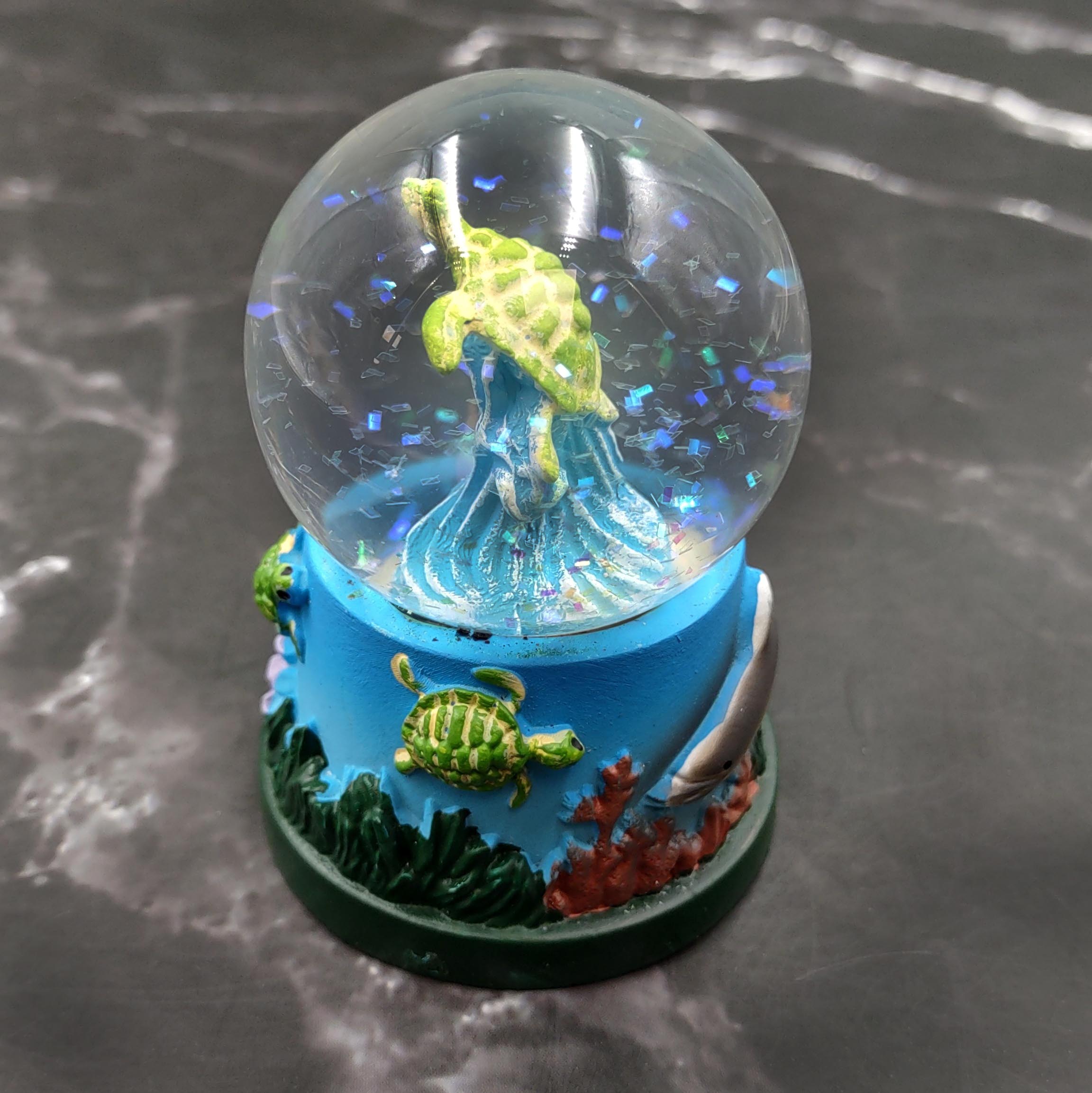 Small Sea Turtle Water Globe with Dolphin and Coral Base (1 globe approx. 2.75 inches tall) Cute Sea Turtle Water Globe for gifts & decor!