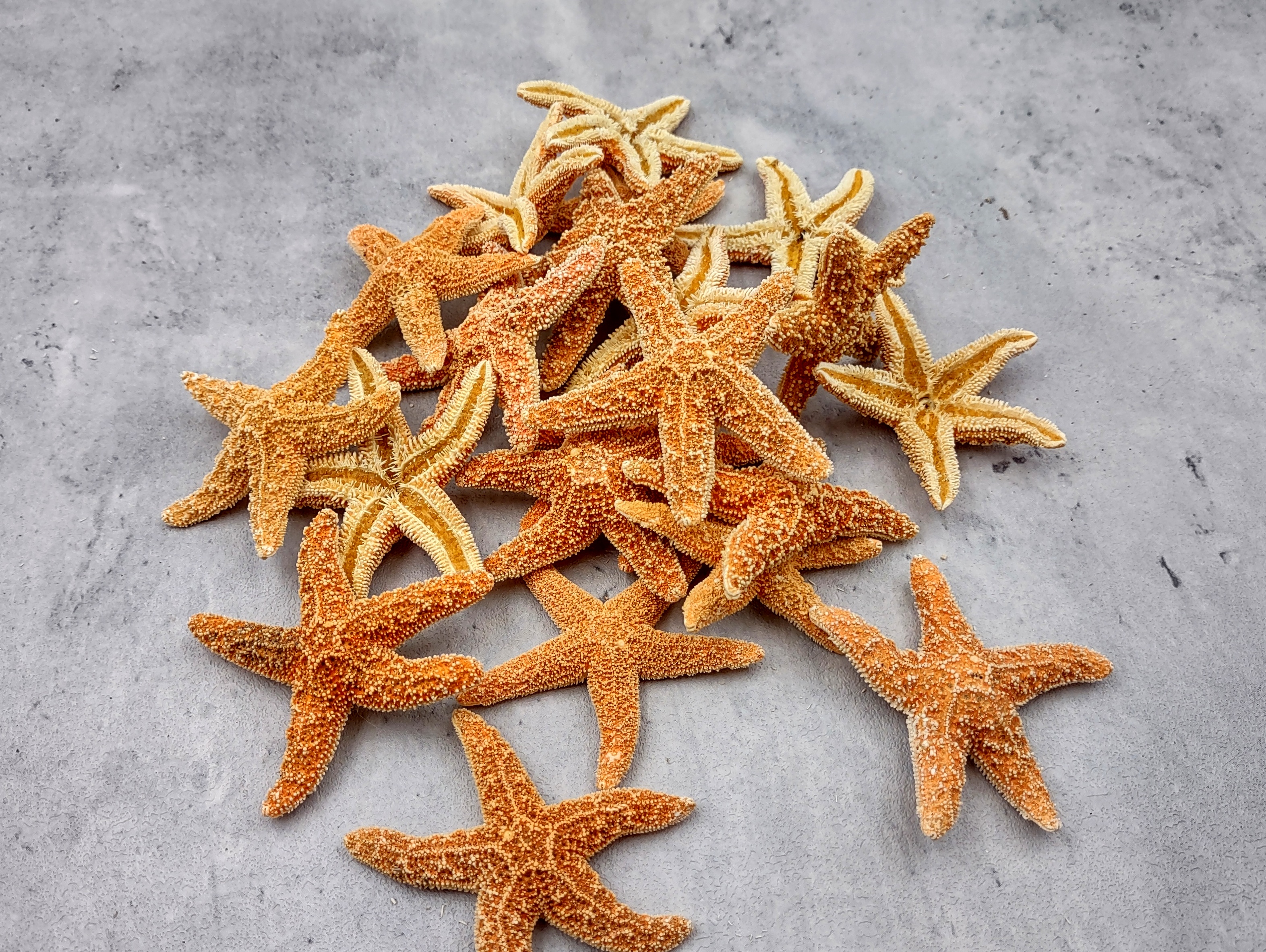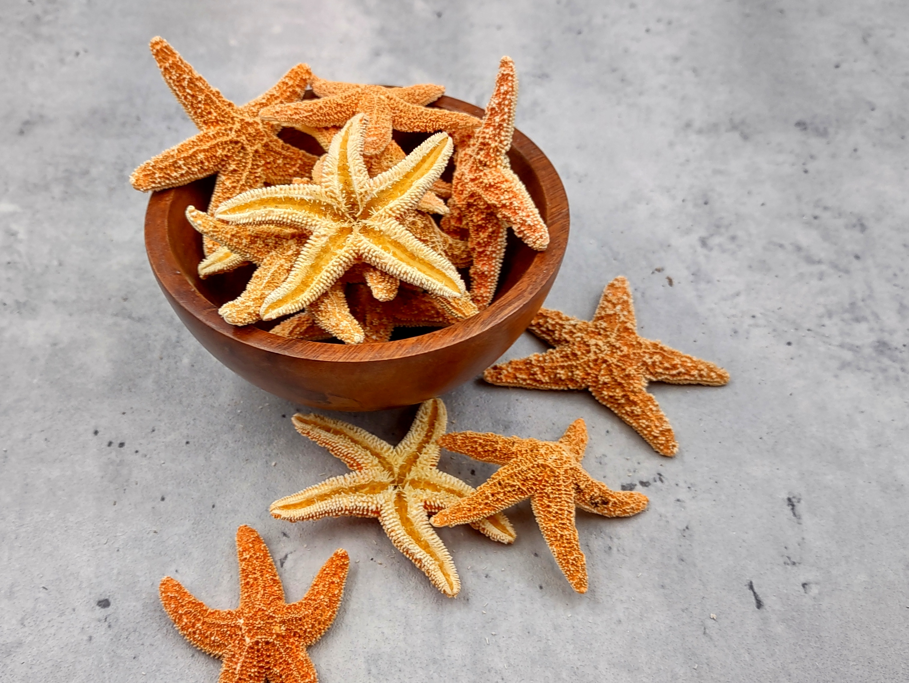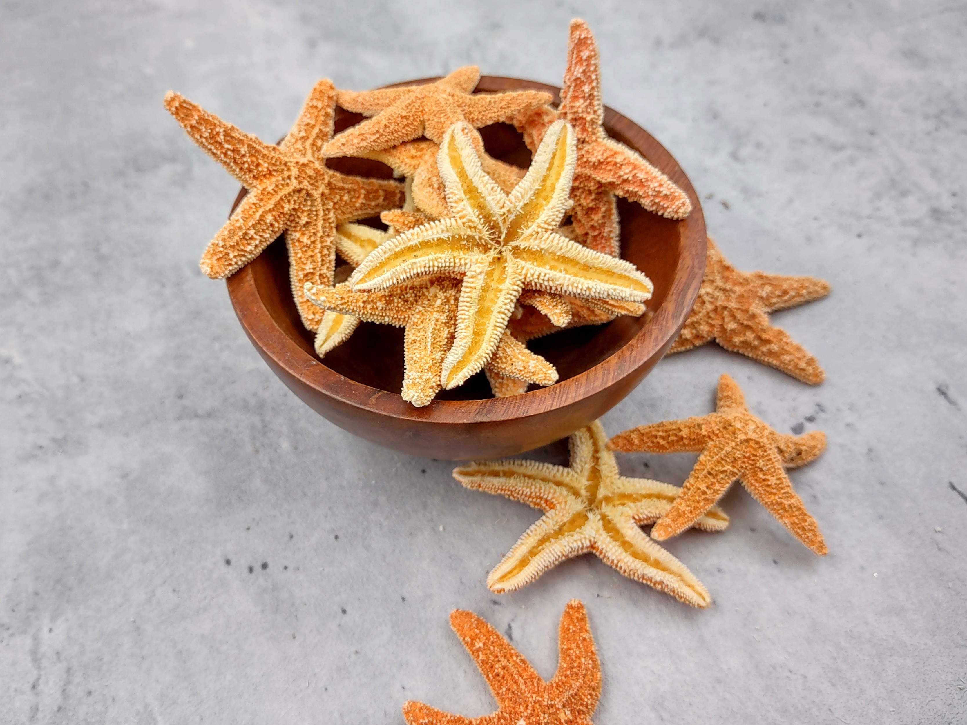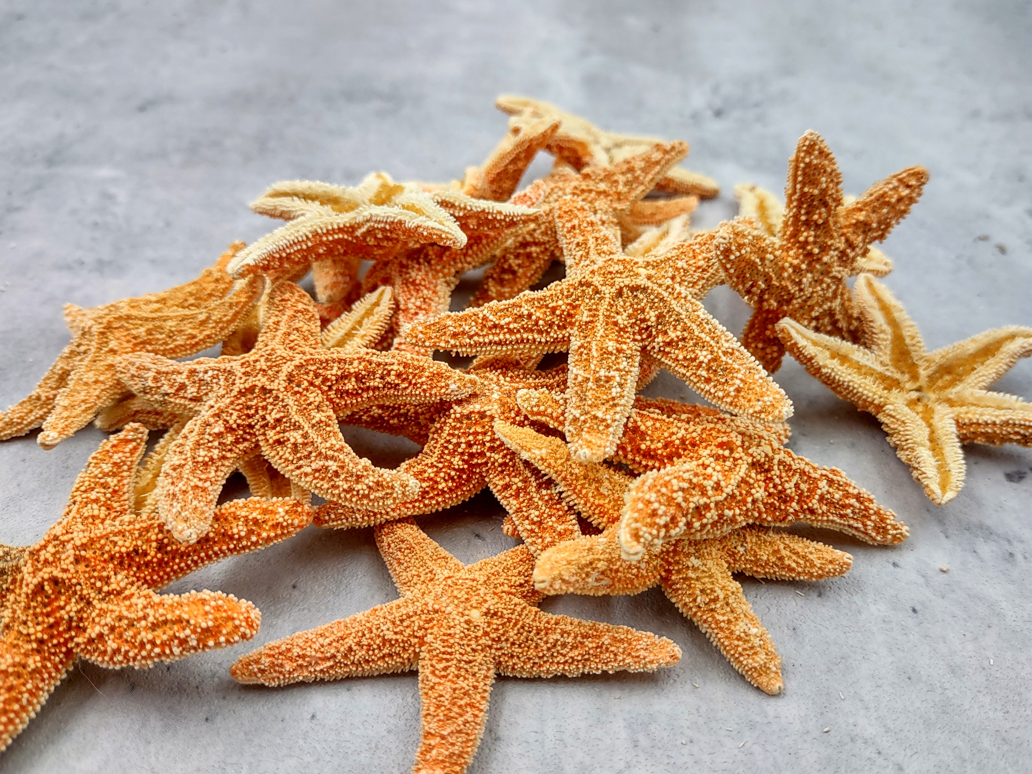 These small Sugar Starfish great for all kinds of crafts and decorating. They have granules on them which resemble sugar, hence the name. Being a product of nature, Starfish are not all perfectly symmetric and will have arms that are slightly bent, bulbous or shorter than others.