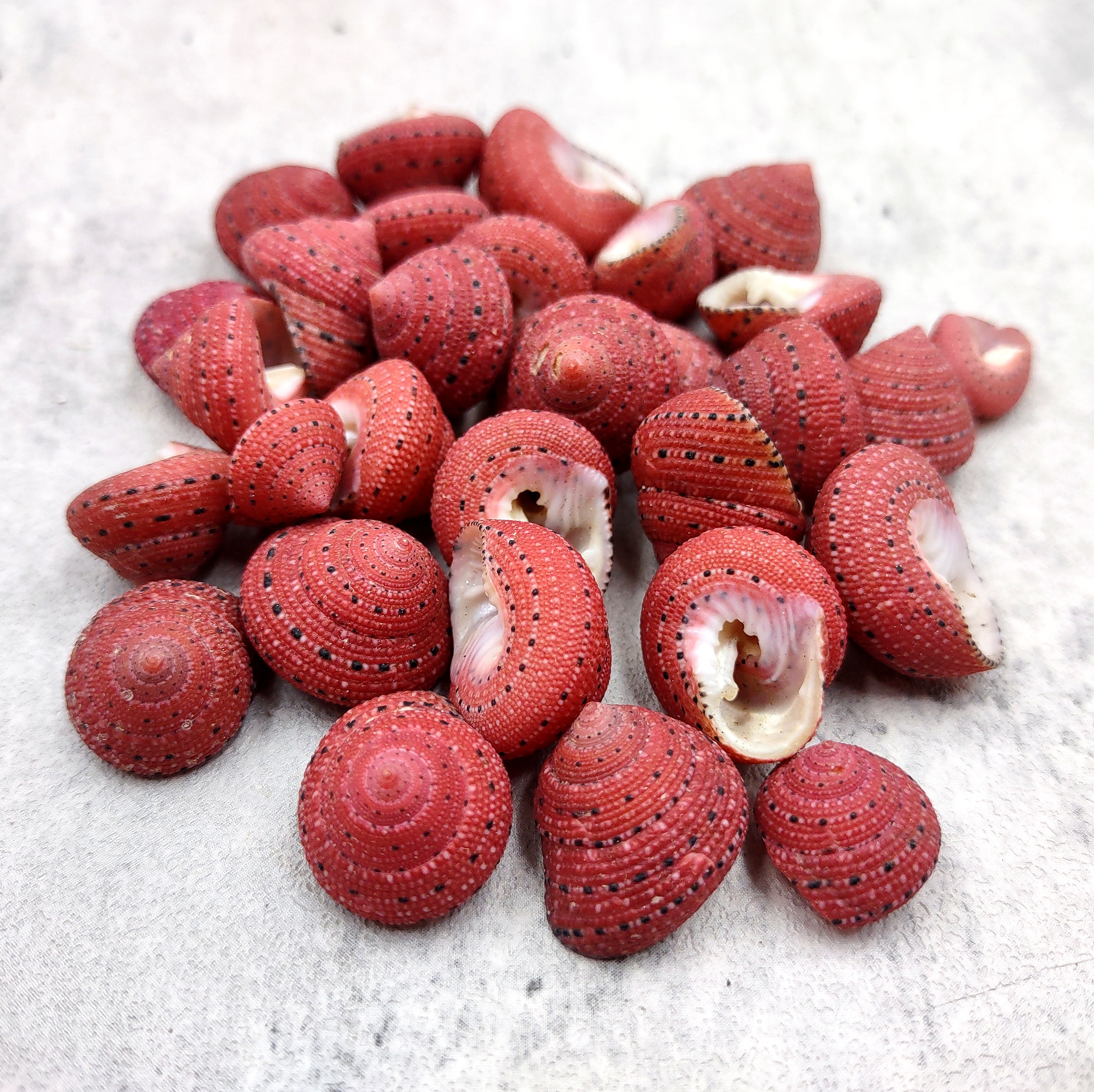 Customers often search for: clanculus puniceus, craft seashell, half inch seashell, natural sea shells, shells for jewelry, strawberry top shell, round red shell, sea shells for sale, shell for collection, shells for display, small red shells, red strawberry top, strawberry seashell