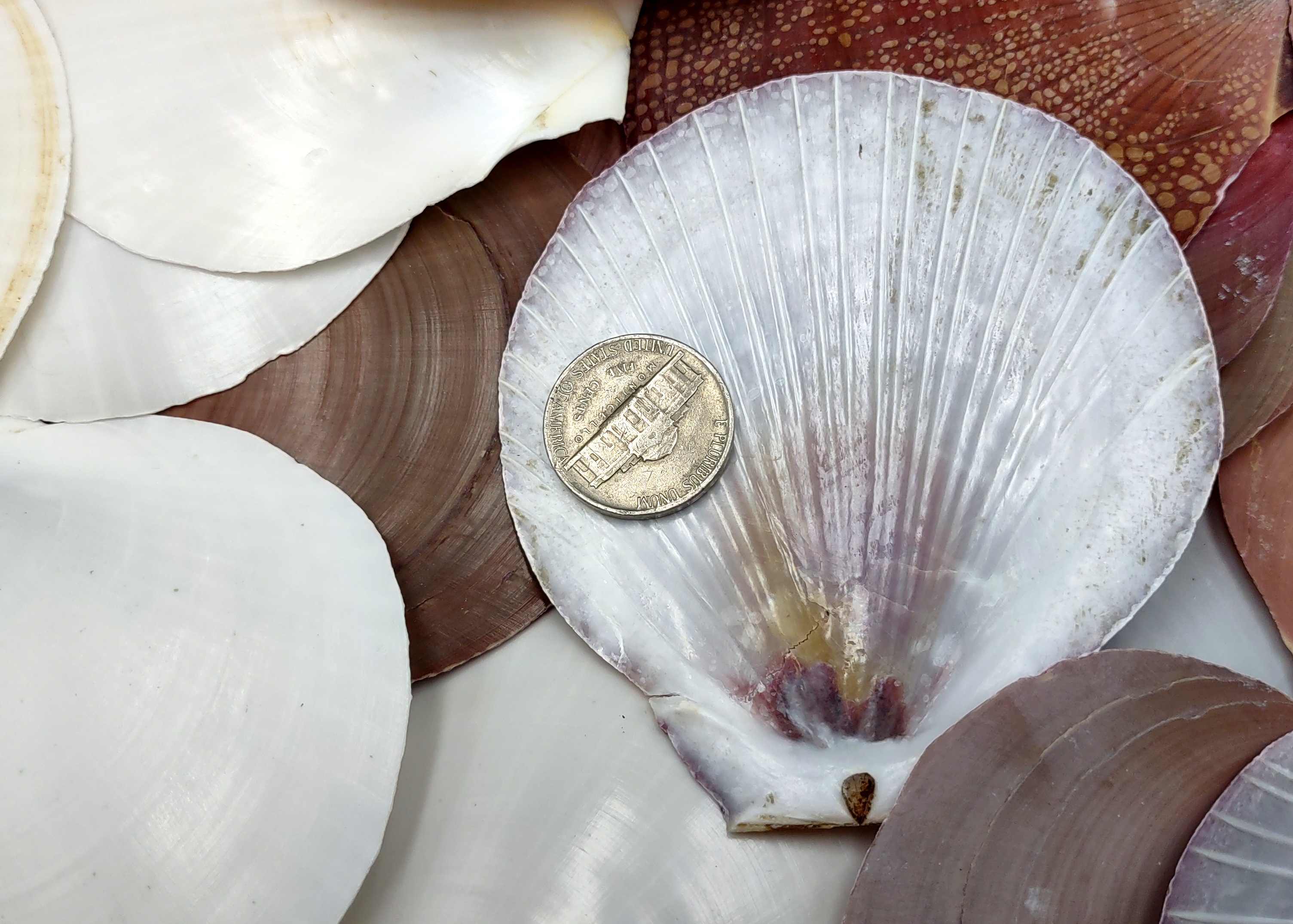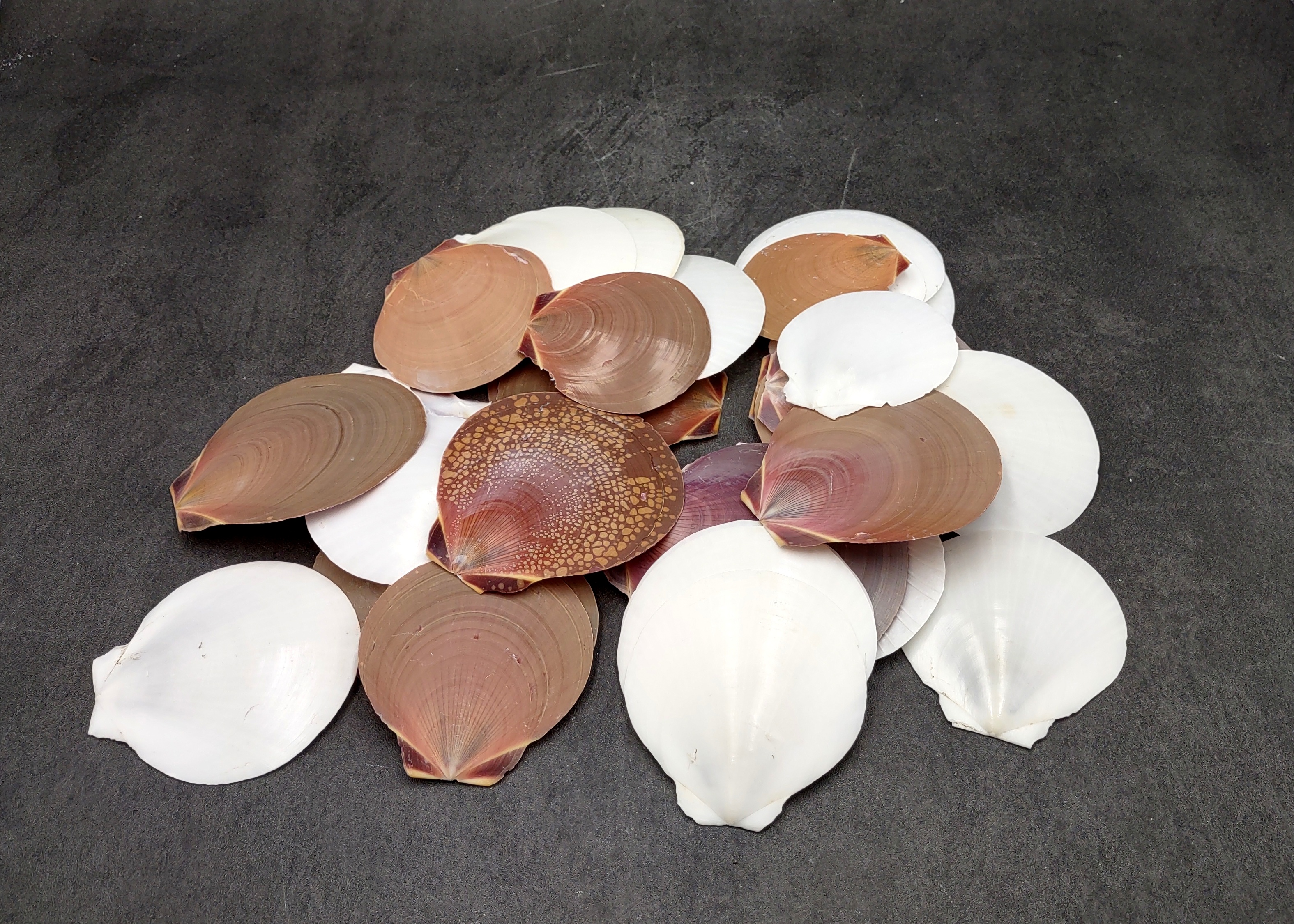 Sun and Moon Scallop Seashells Brown Purple White Mix Amusium Pleuronectes (Approx. HALF pound 30+ shells) Scallop mix for arts & crafts!