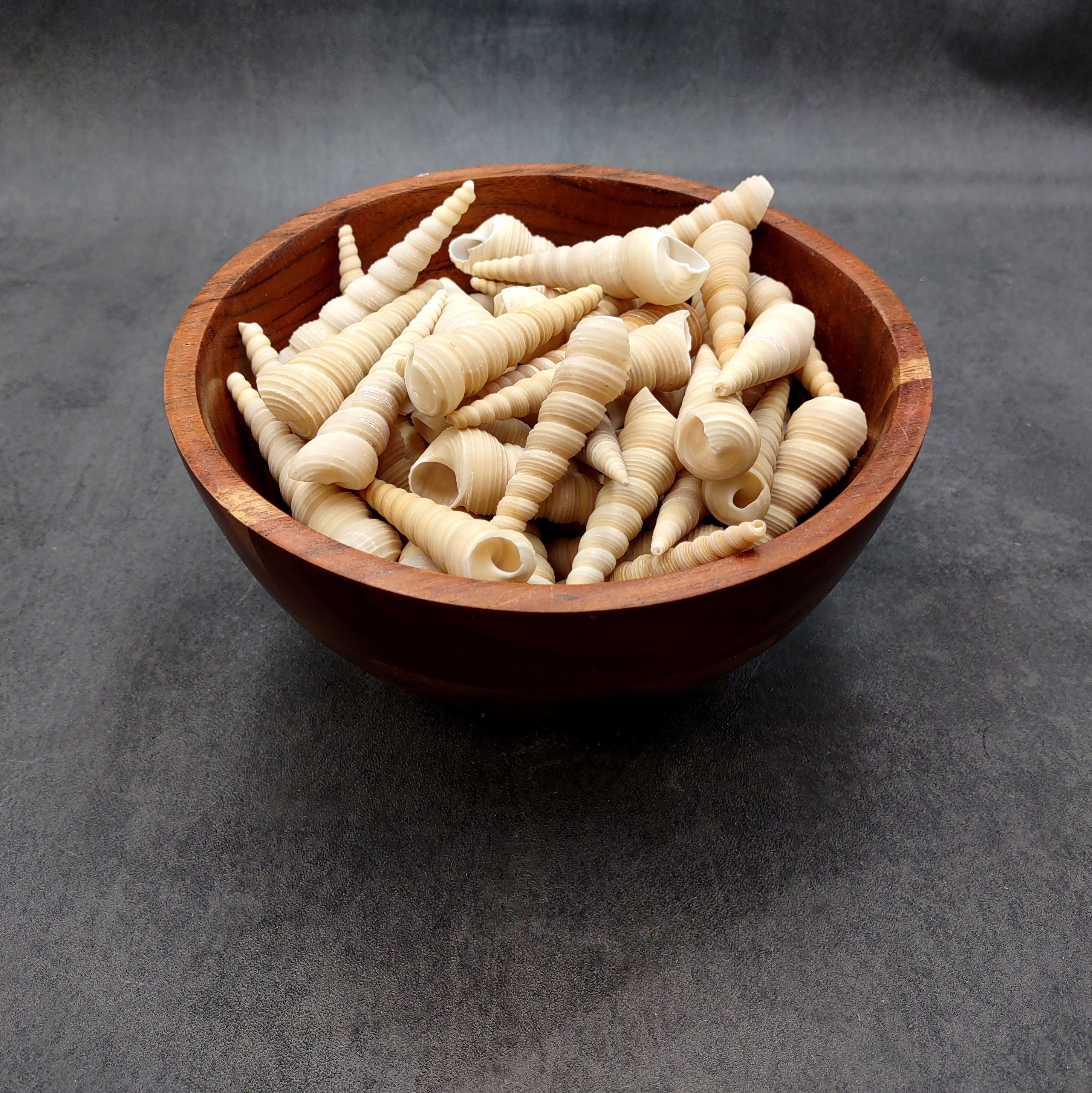 White Tan Turitella Seashells are a delightful way to infuse your collection, collage, or project with a coastal vibe. Perfect for wind chimes or destination picture frames, these shells make elegant decor for both the home and office. Our customers revel in the many ways to incorporate these shells into jewelry-making, as vase fillers, for wedding decorations, or as lamp adornments; the creative possibilities are endless!