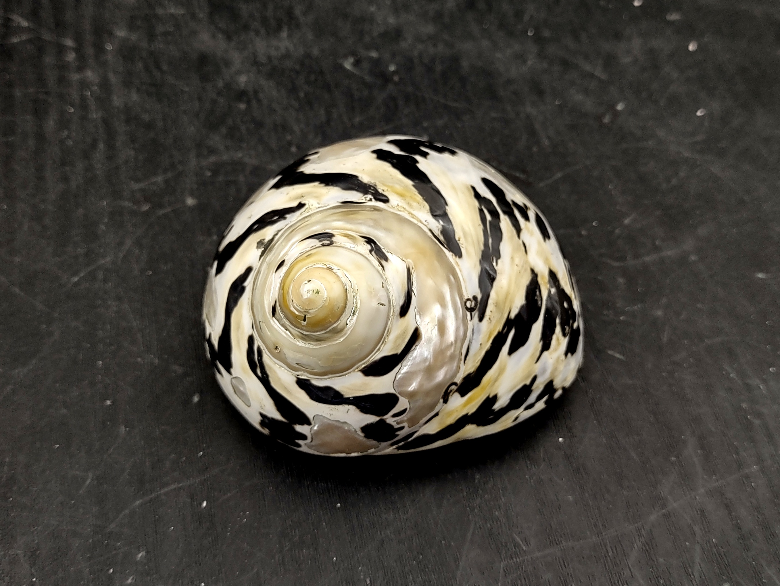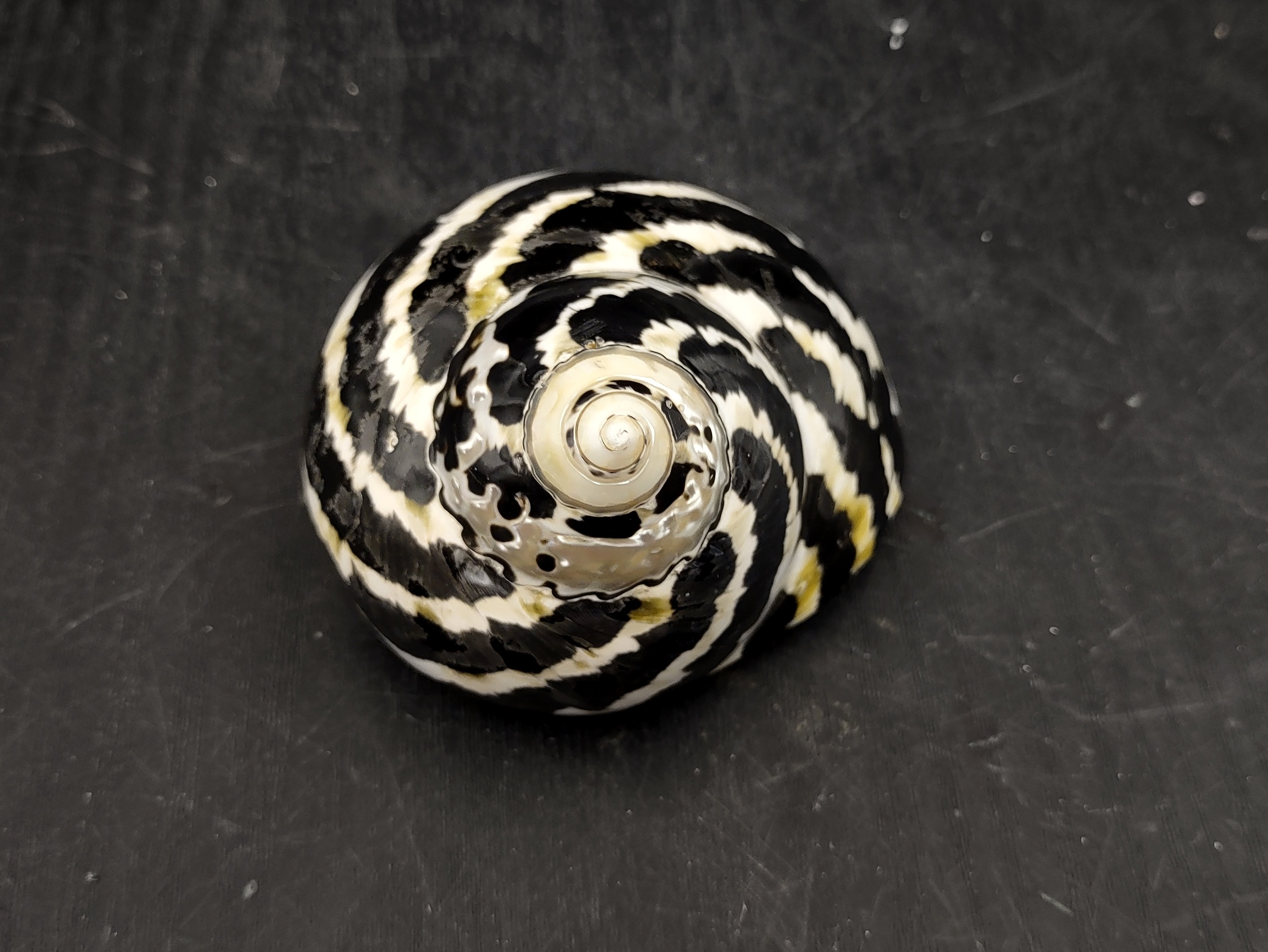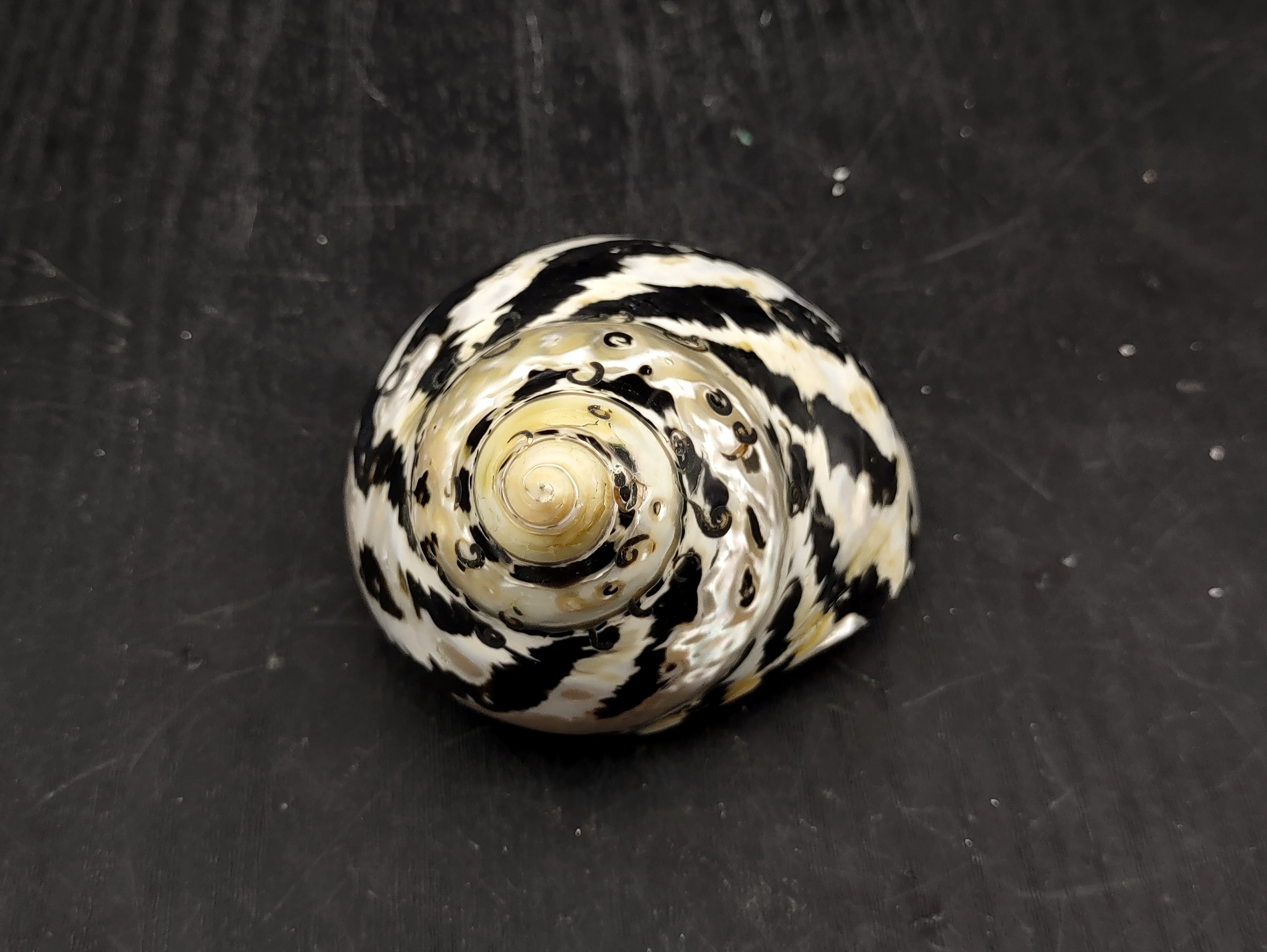 West Indian Top Polished Seashell Black Cittarium Pica (1 shell approx. 2.5+ inches) AKA Magpie Striped Shell for display arts & crafts!
