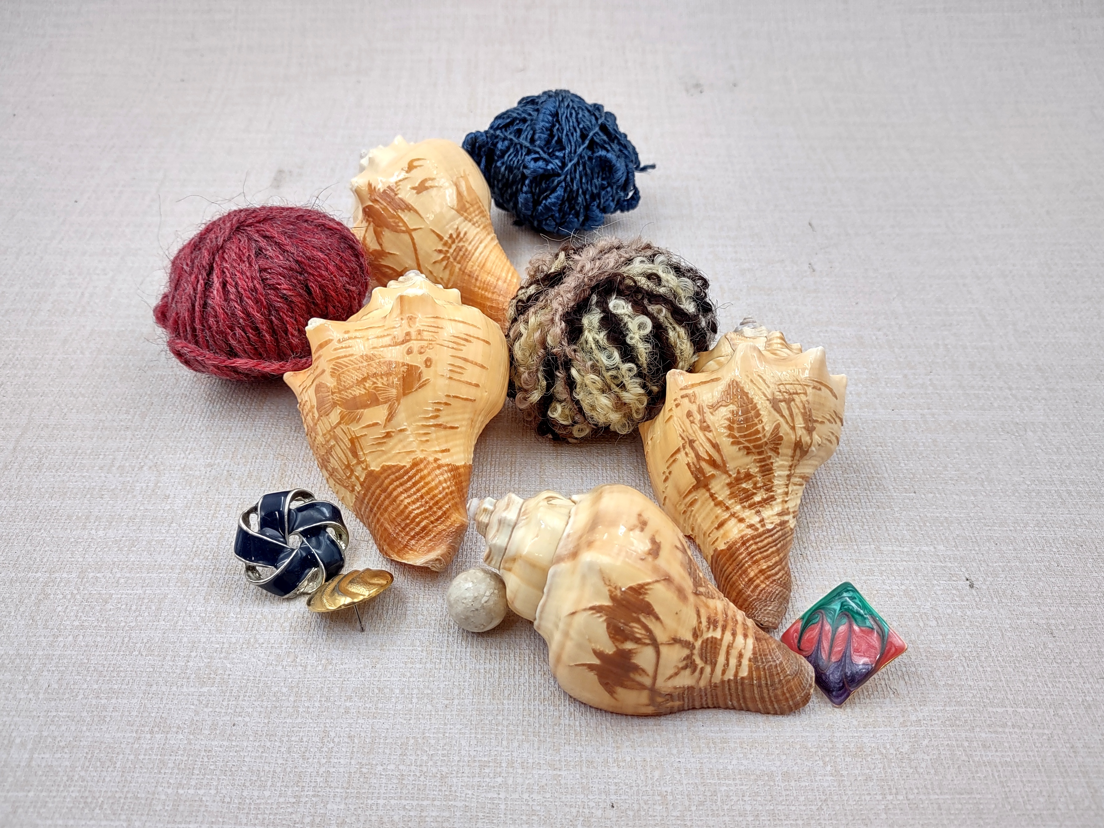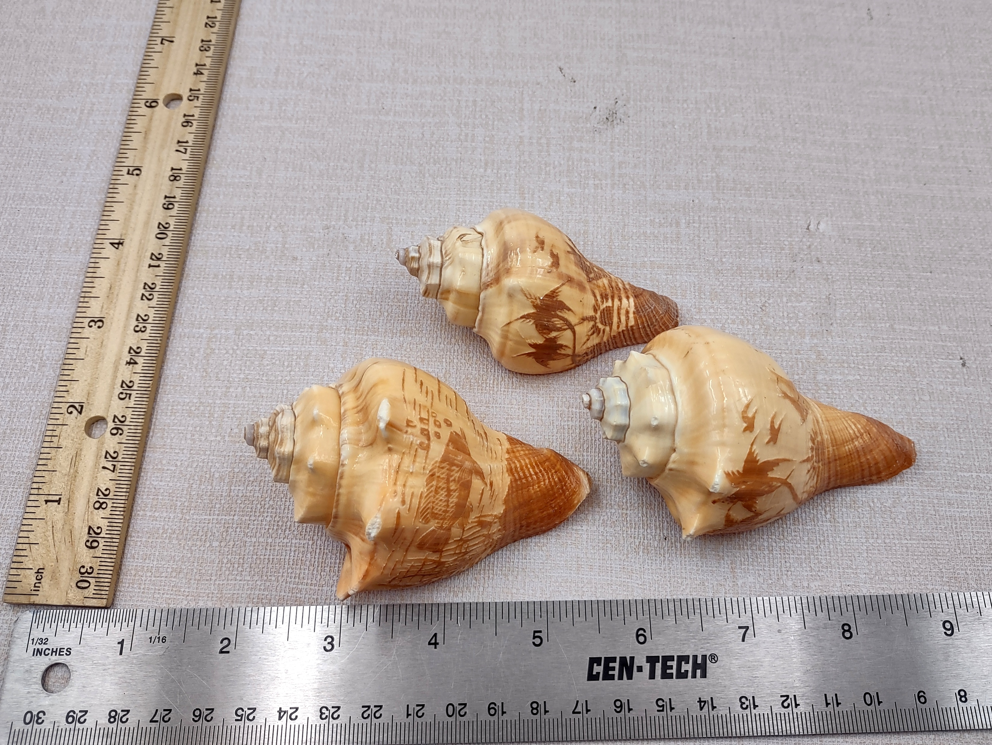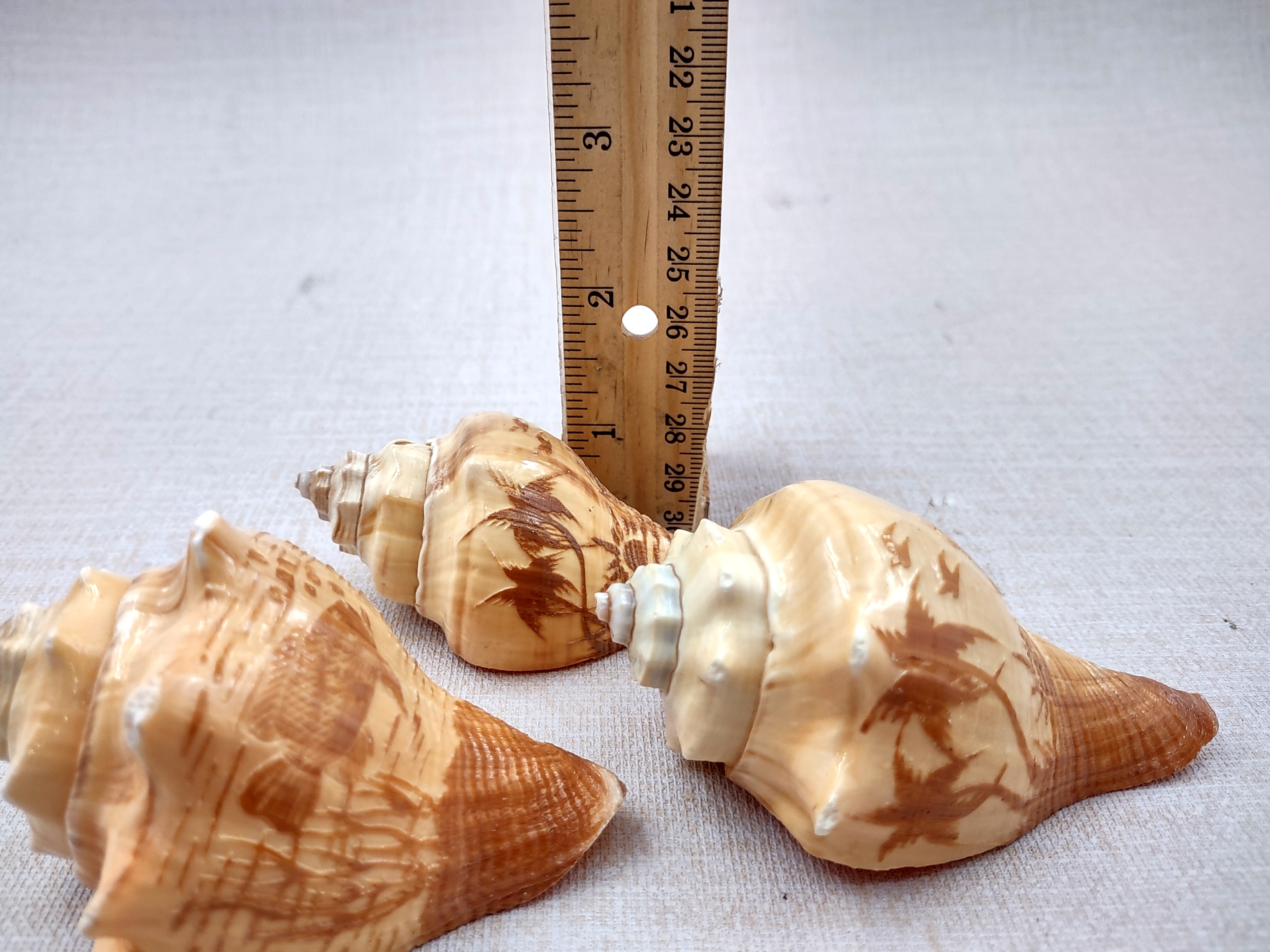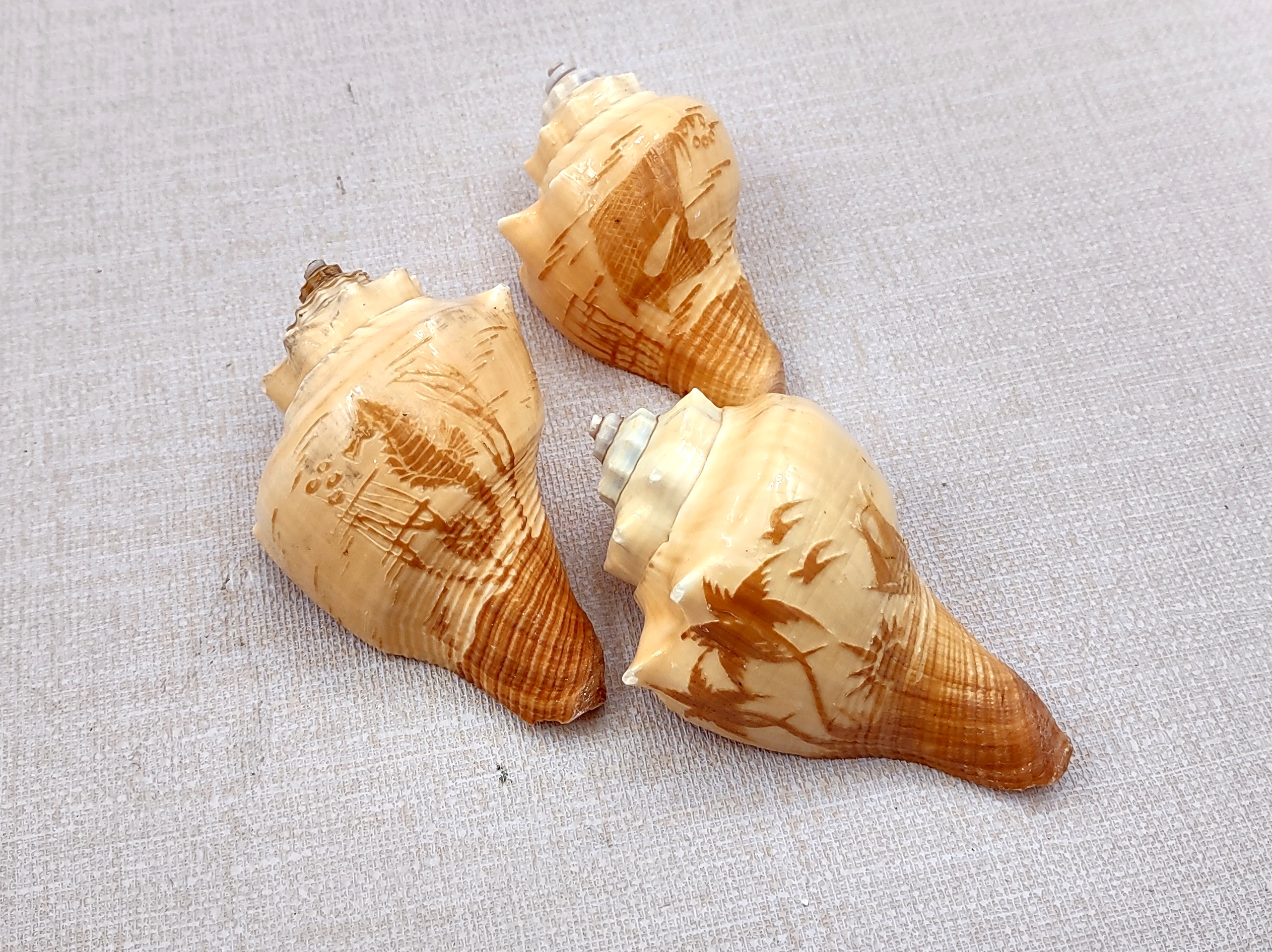 Carved Conch Seashell Decorative Set Sea Horse Fish Sunset (3 shells approx. 3+ inches) Carved Conch shells for coastal crafting & gifting!