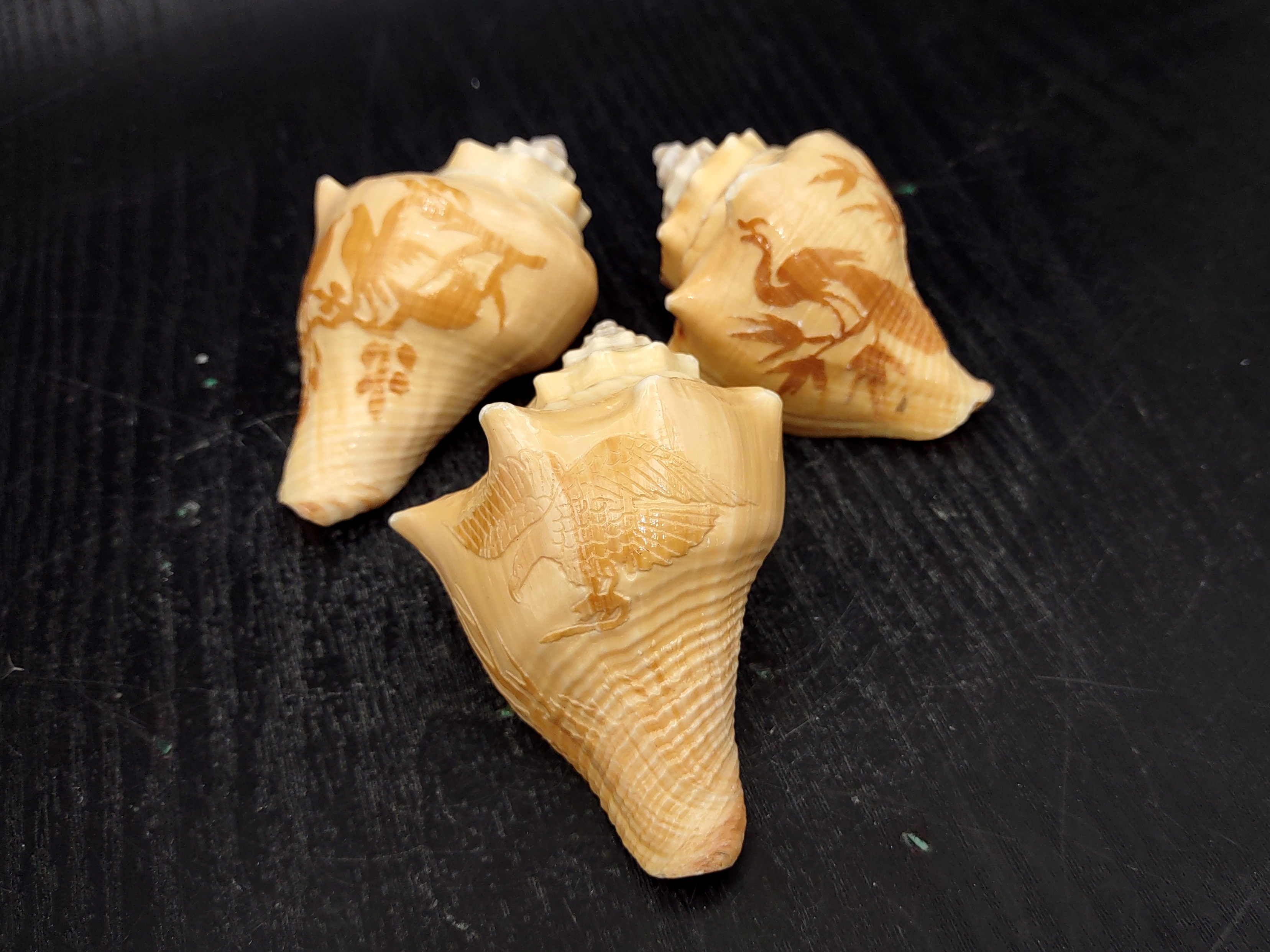 - Carved natural conch shells