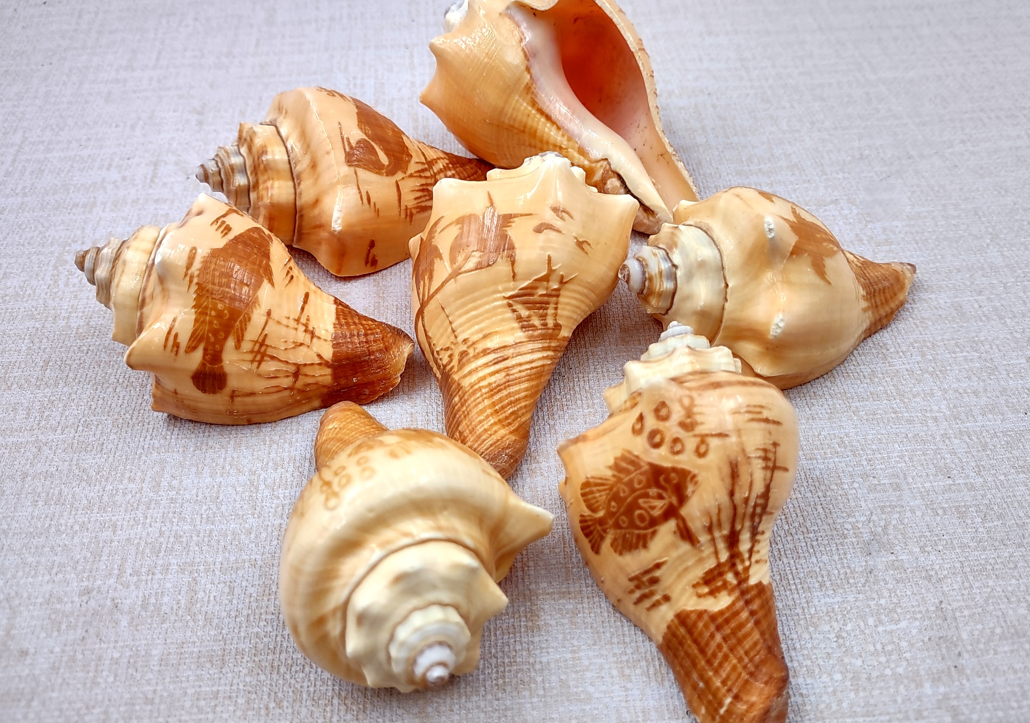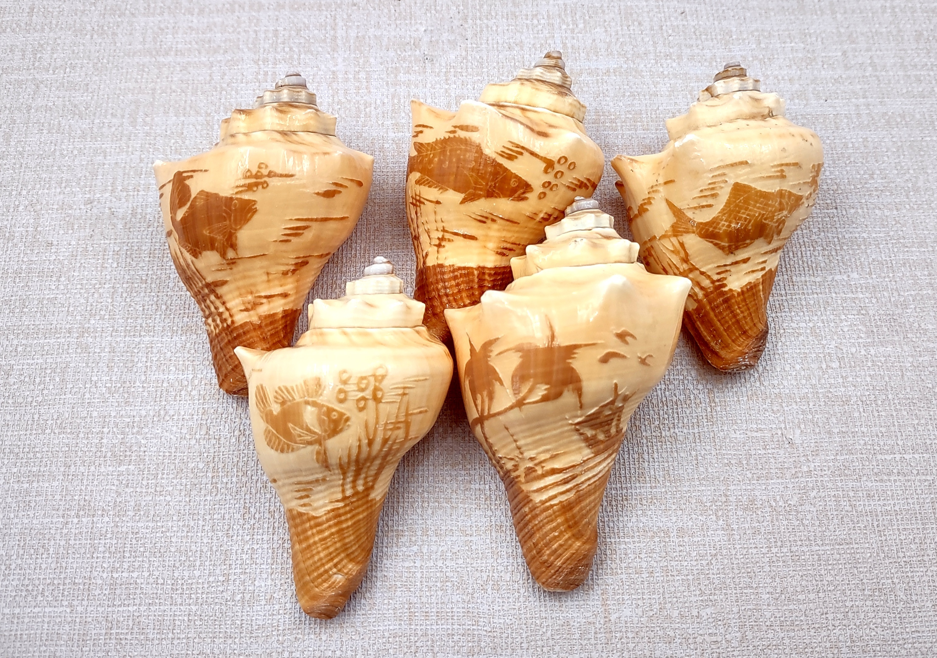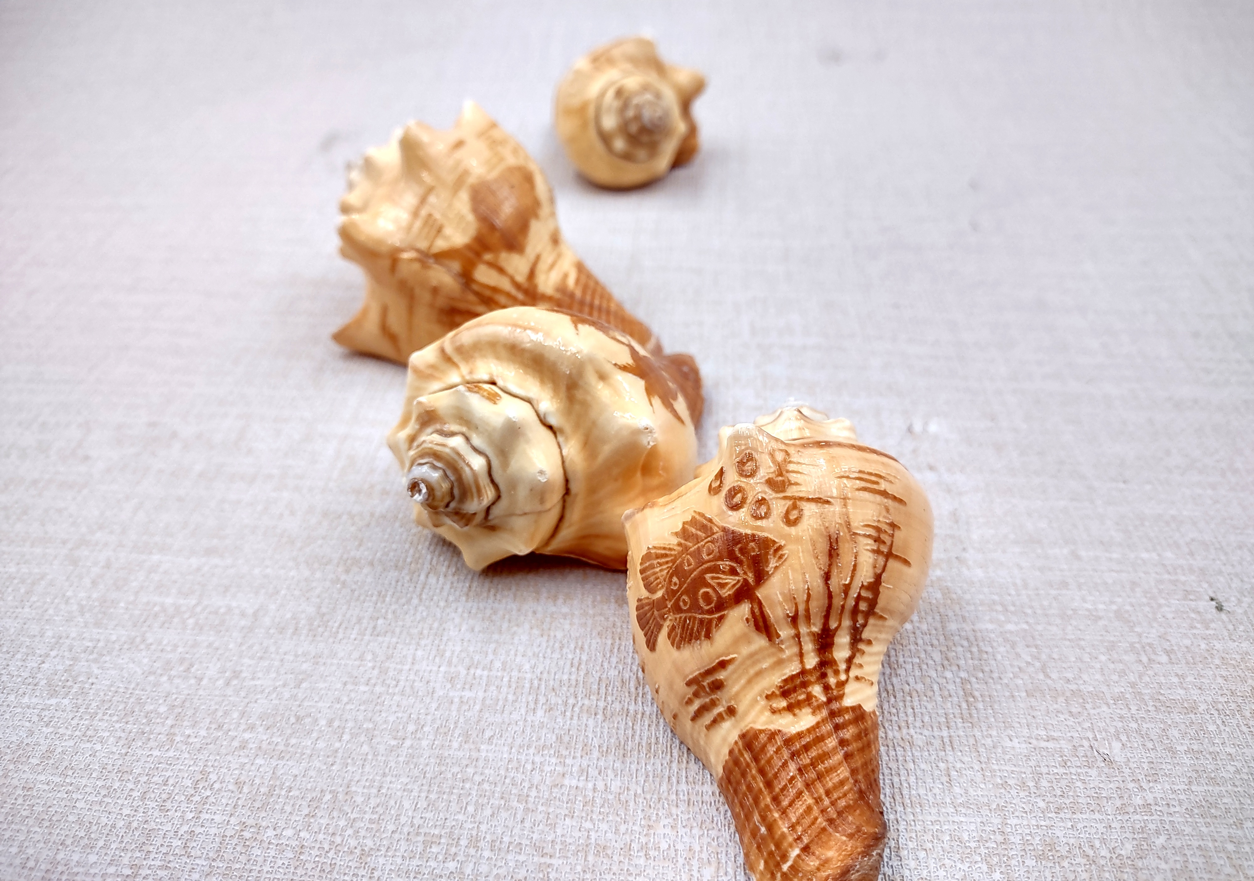 - Carved natural conch shells