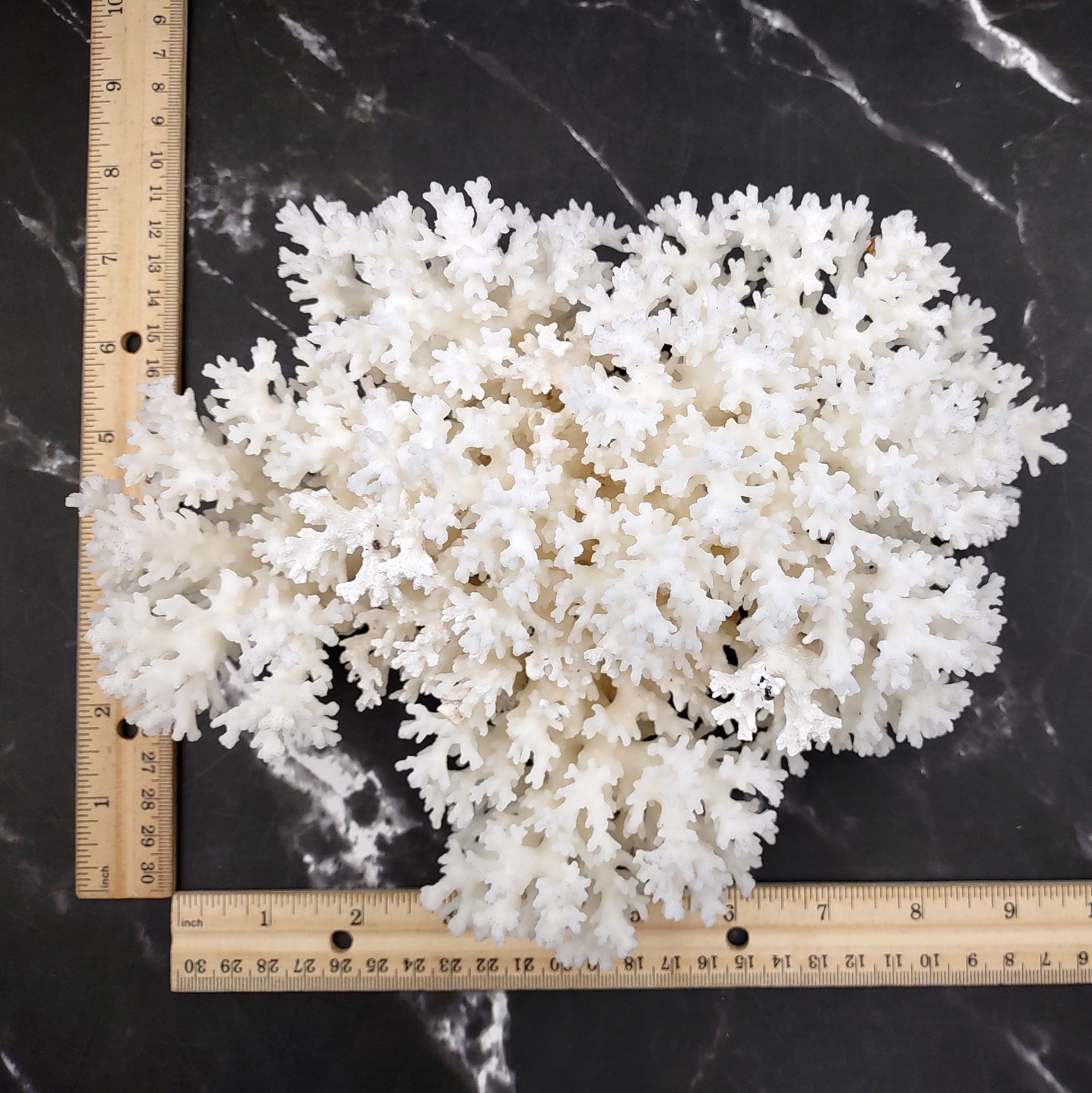 White Lace Coral, or Pocillopora Damicornis, is sometimes referred to as the Cauliflower Coral due to appearance. It is native to tropical and subtropical parts of the Indian and Pacific Oceans. These are beautiful show pieces and are high quality specimens. It has a flat base, so it can be displayed from any angle. Every coral is unique and will vary in form, shape and size, covered with delicate branches and micro verrucae. Each piece has distinctive characteristics, meaning no uniform shapes.