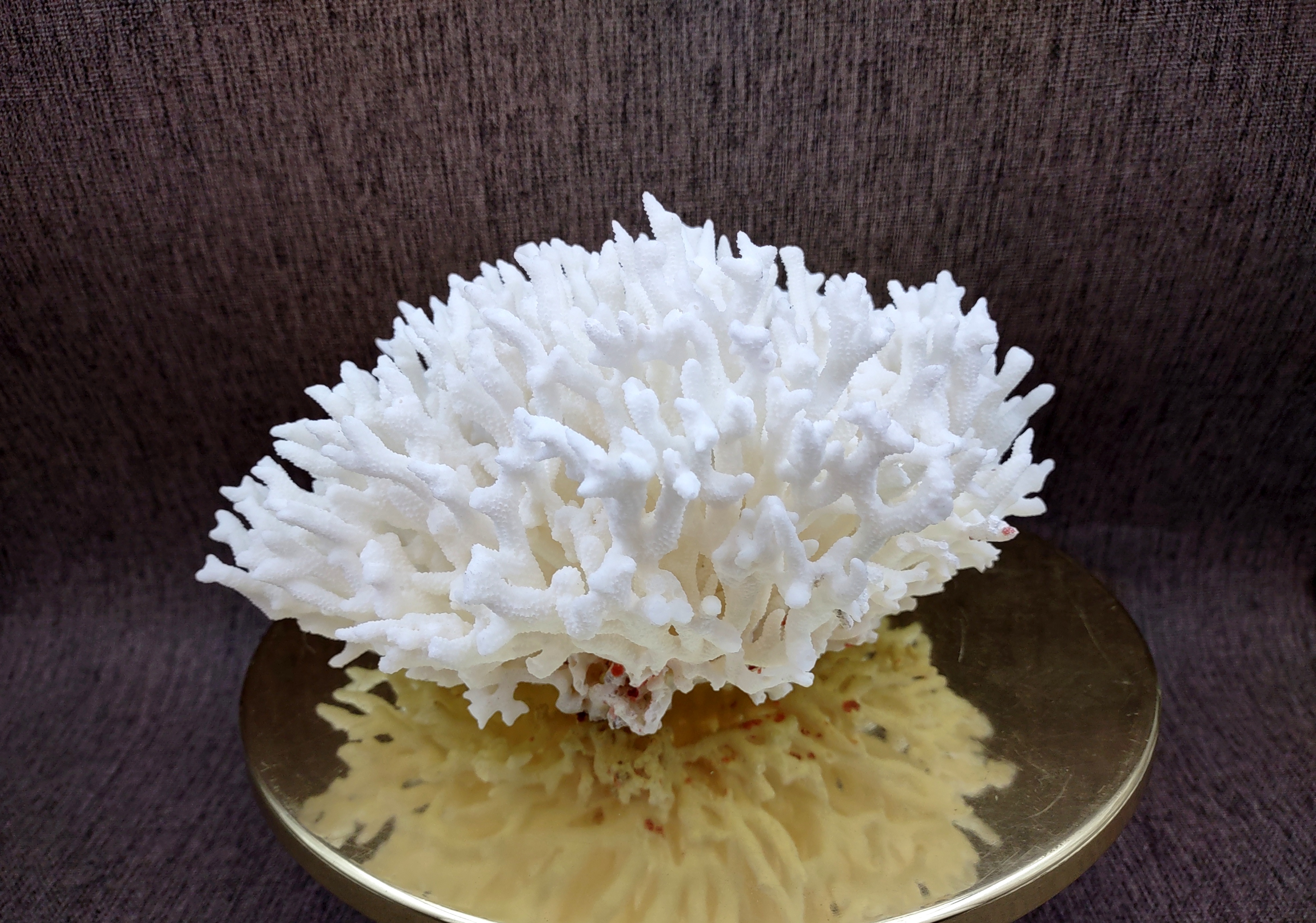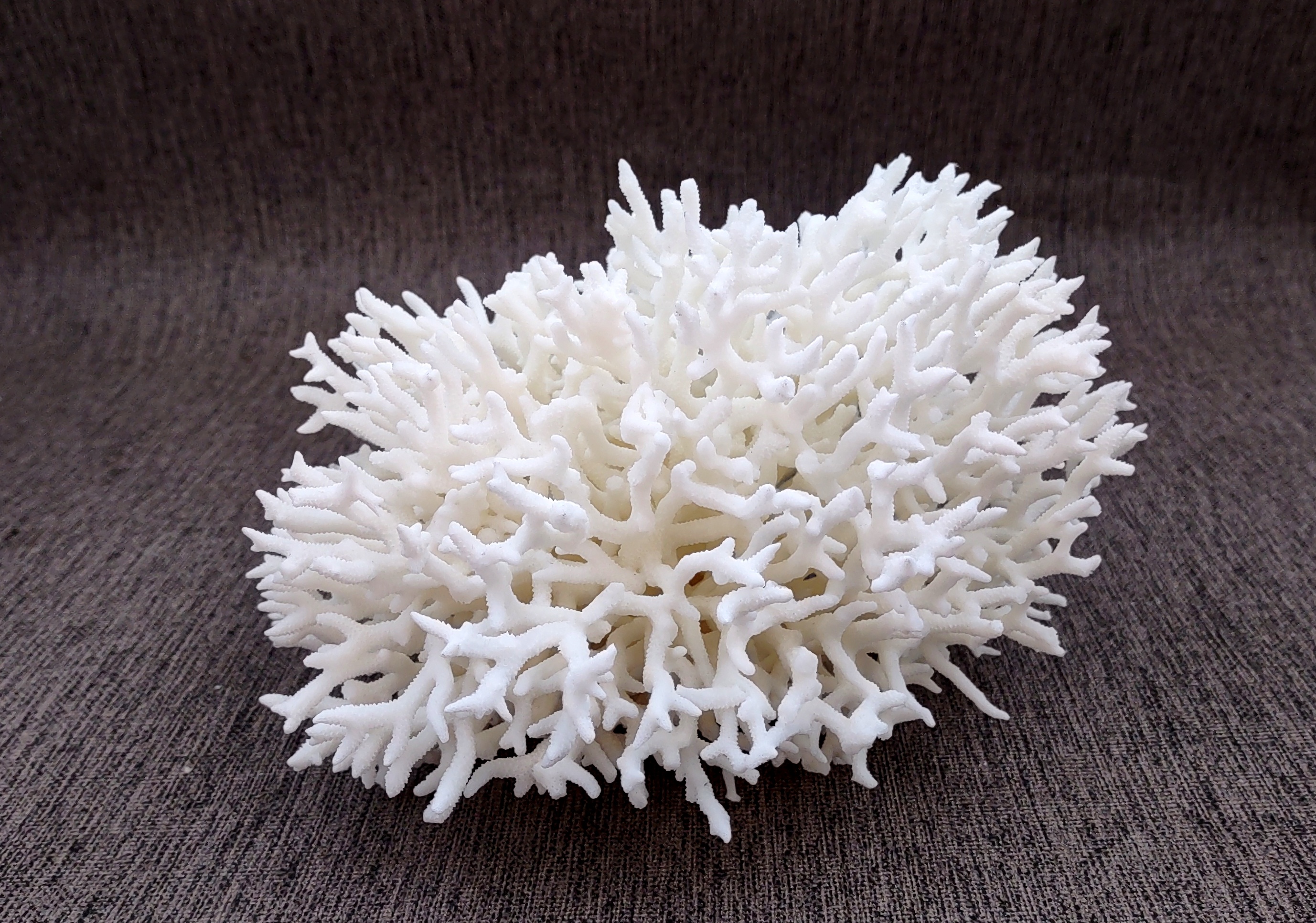 The Birdsnest Coral is coral with very delicate, thin branches with needle-like tips. Every coral is unique and will vary in form, shape and size. It has a stable base so it can sit wherever you choose to place it, displayed from any angle right side up.