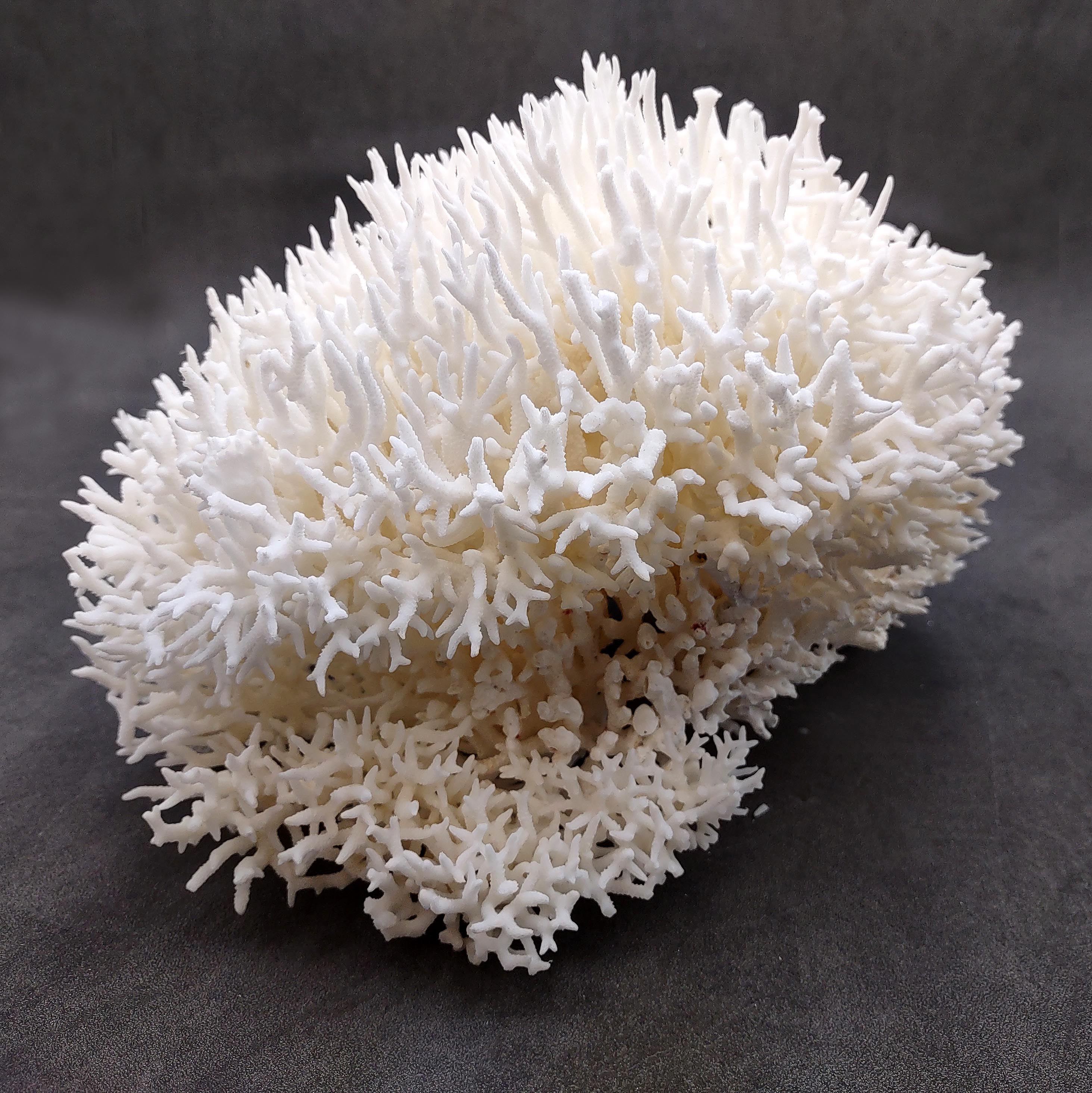 The White Birdsnest Coral features delicate, thin branches with fine, needle-like tips that create a light, airy structure. Each coral is naturally formed and will vary in shape, size, and branching, making every piece one of a kind. With its stable base, this coral can be displayed upright from any angle, making it easy to style on shelves, tables, or display surfaces.