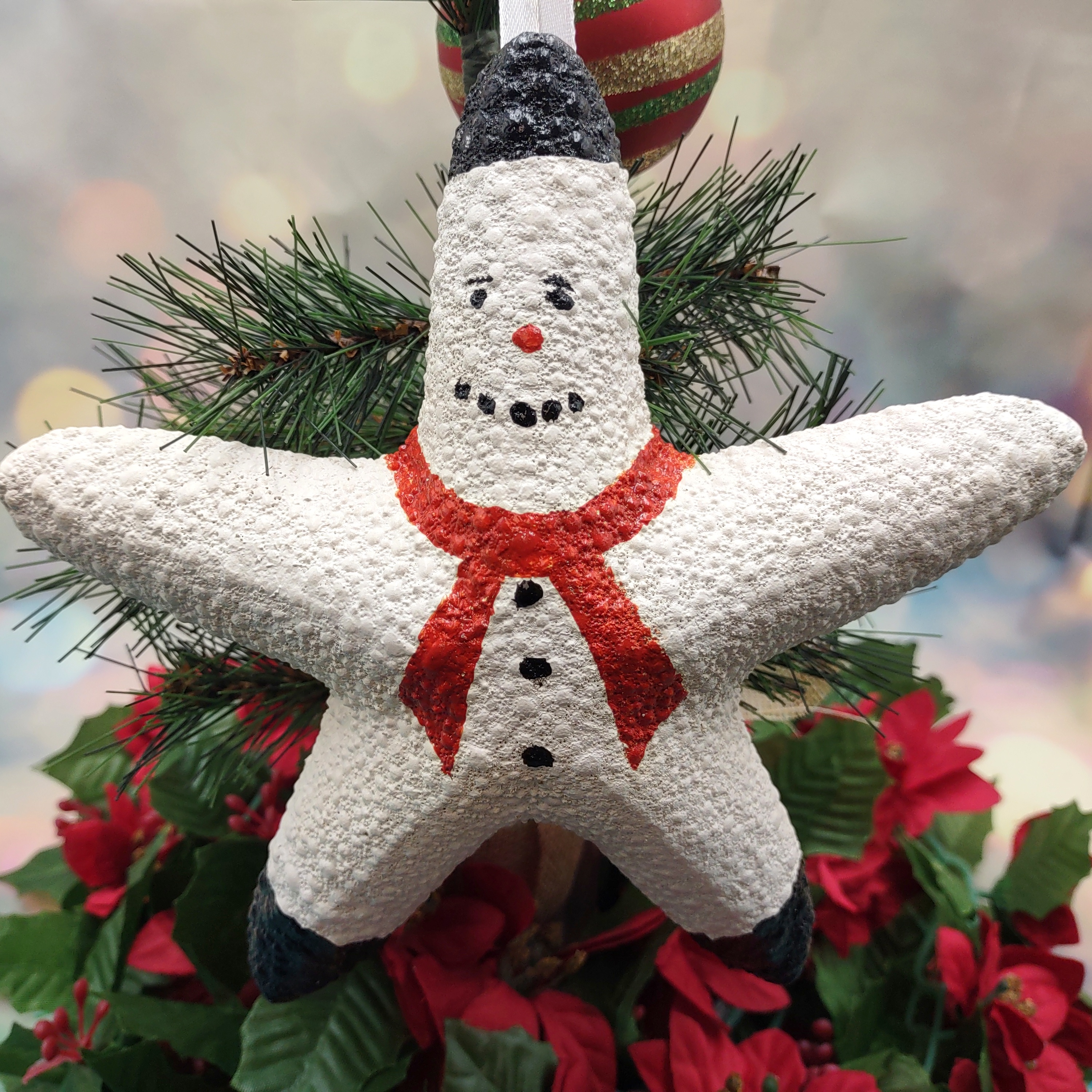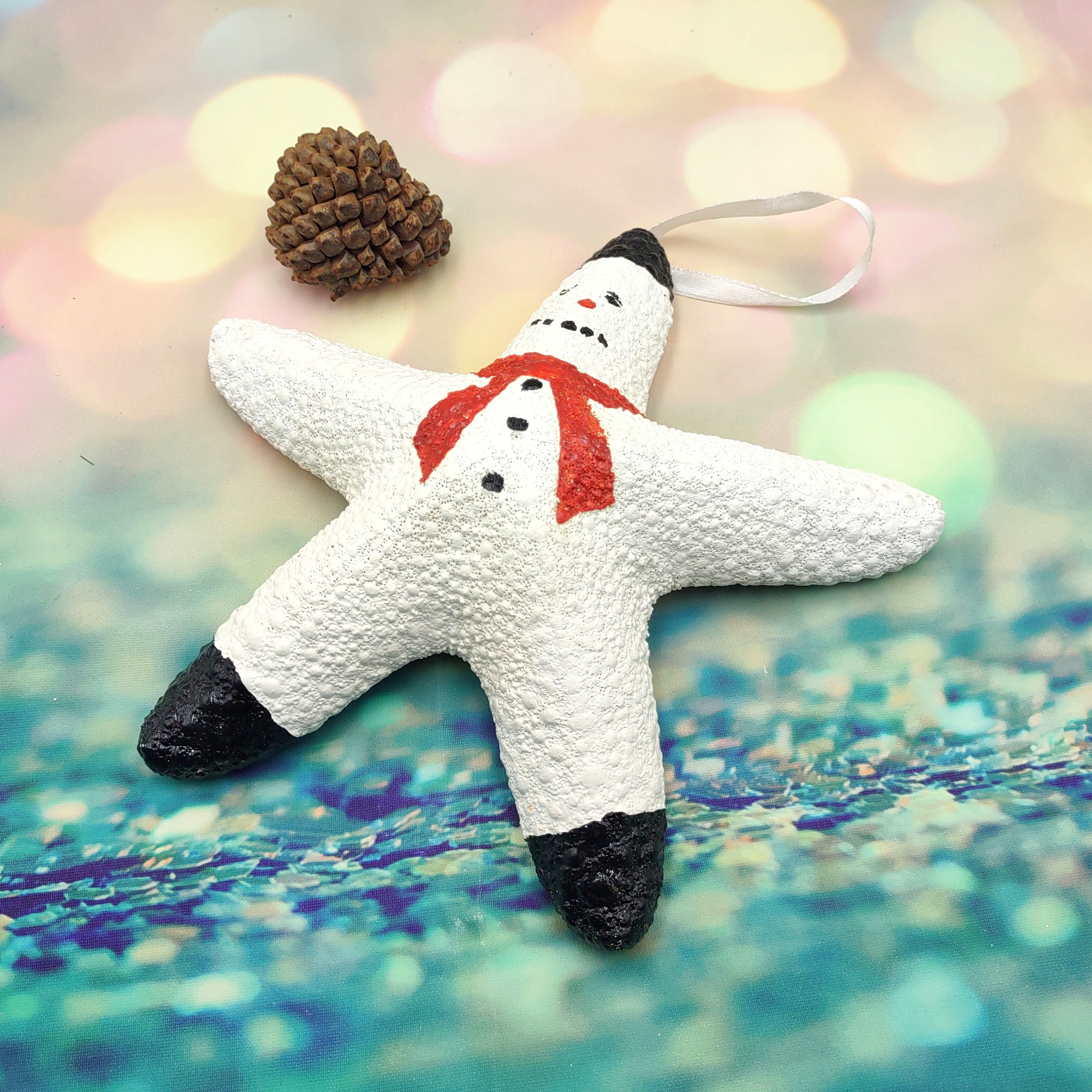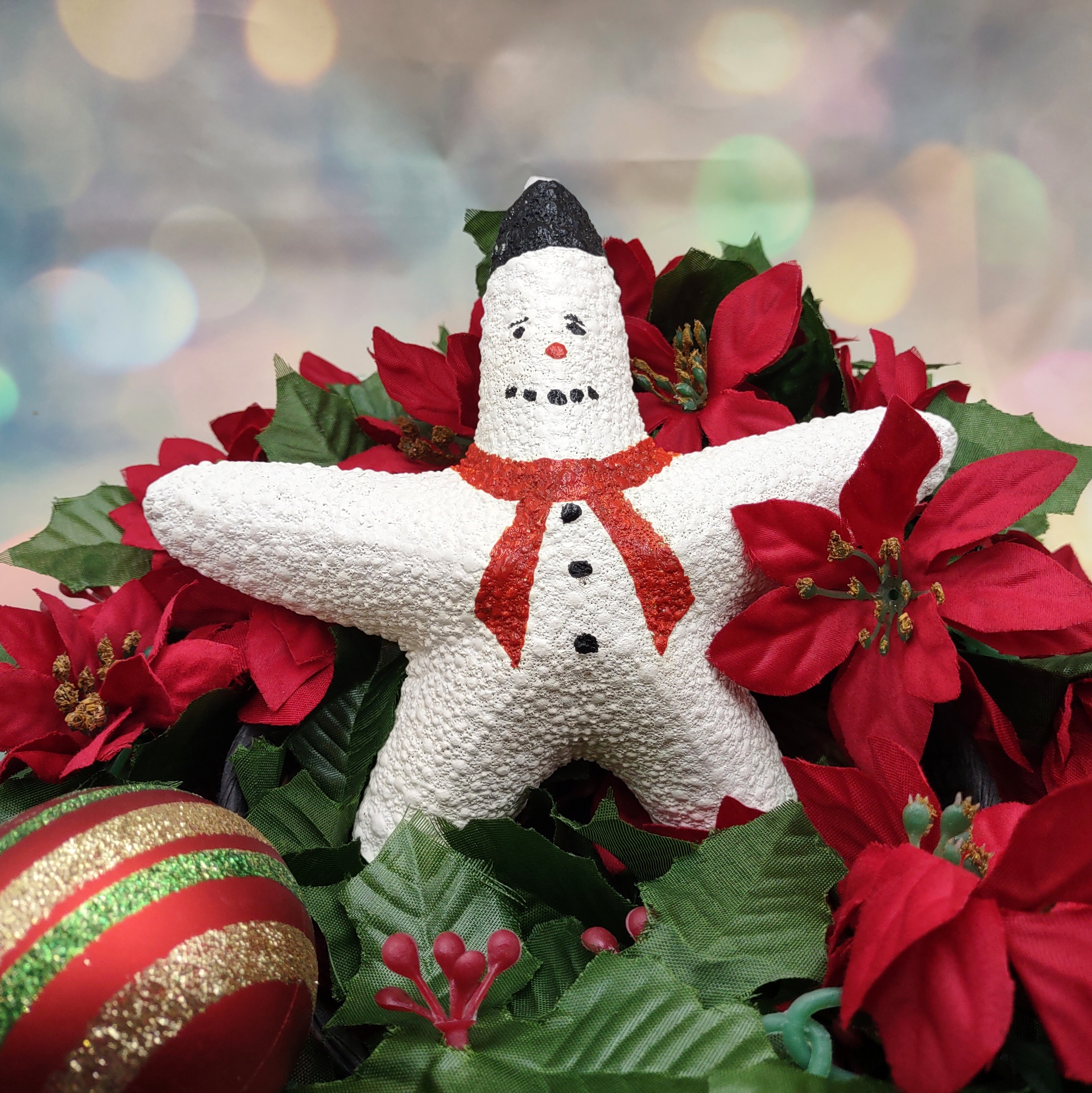 Customers often search for: starfish snowman, starfish ornament, coastal ornament, snowman ornament, Jungle Starfish, ocean seashells, real starfish, christmas décor, xmas beach ornament, seasonal starfish, shell décor for sale, starfish decoration, christmas ornament