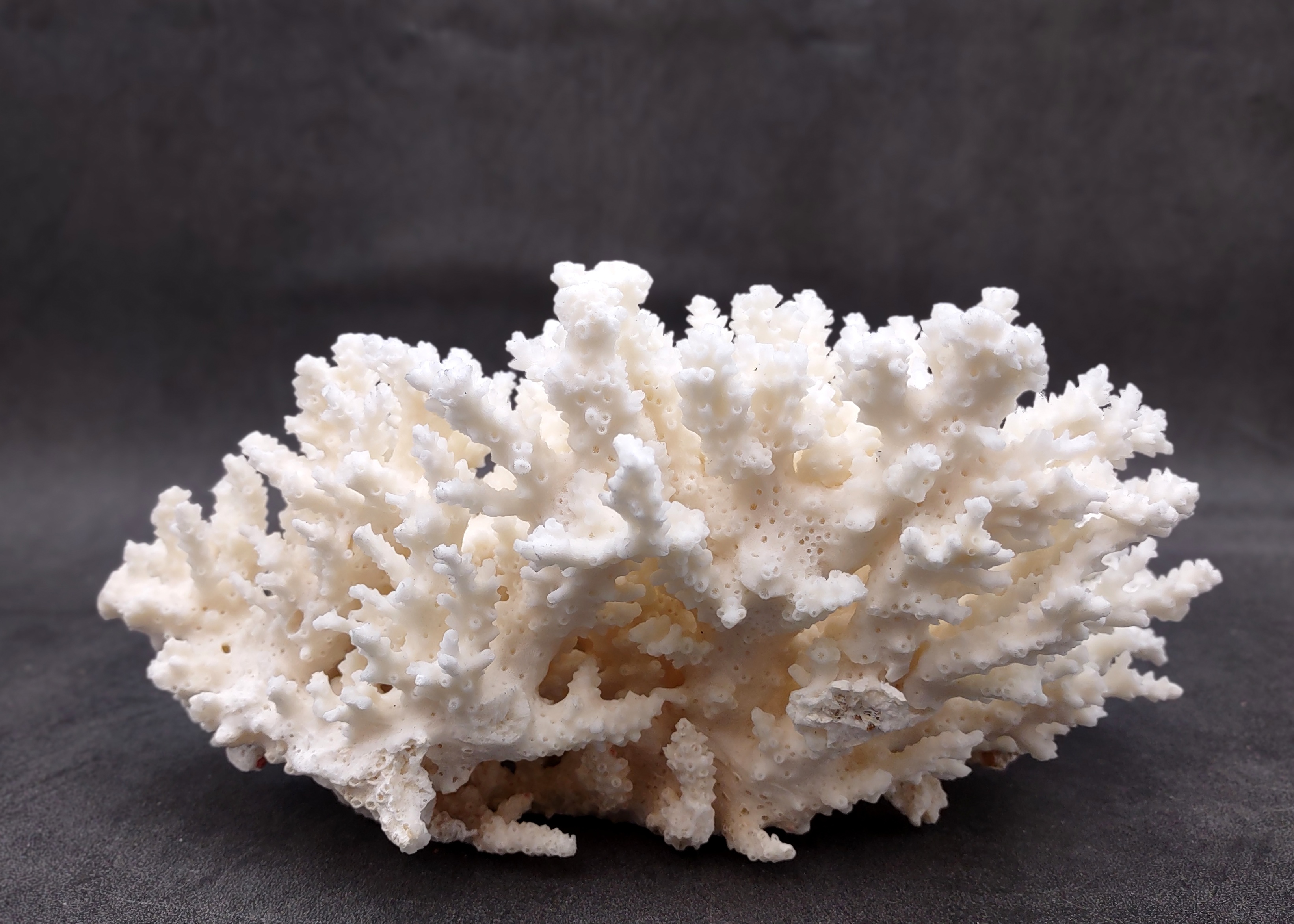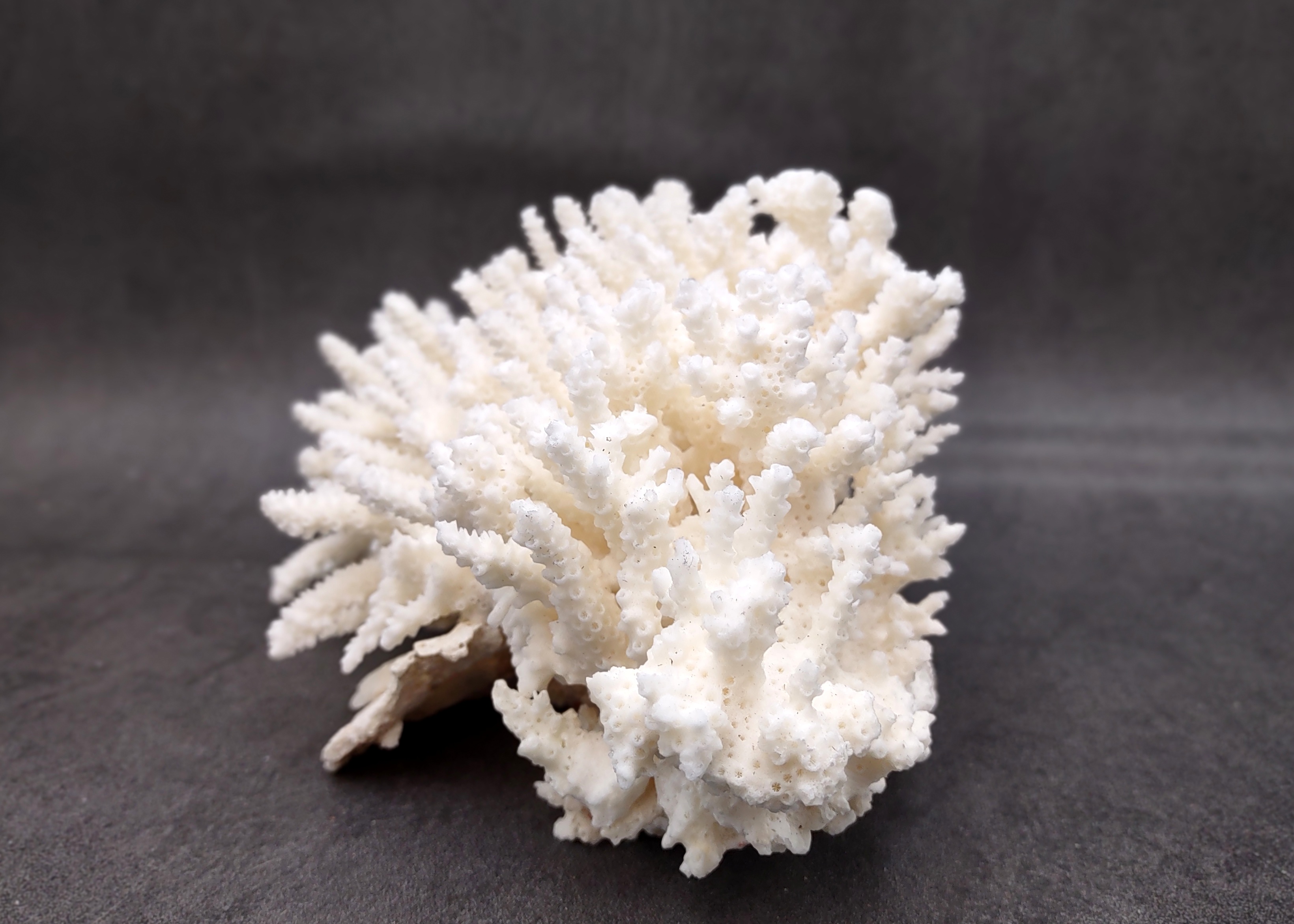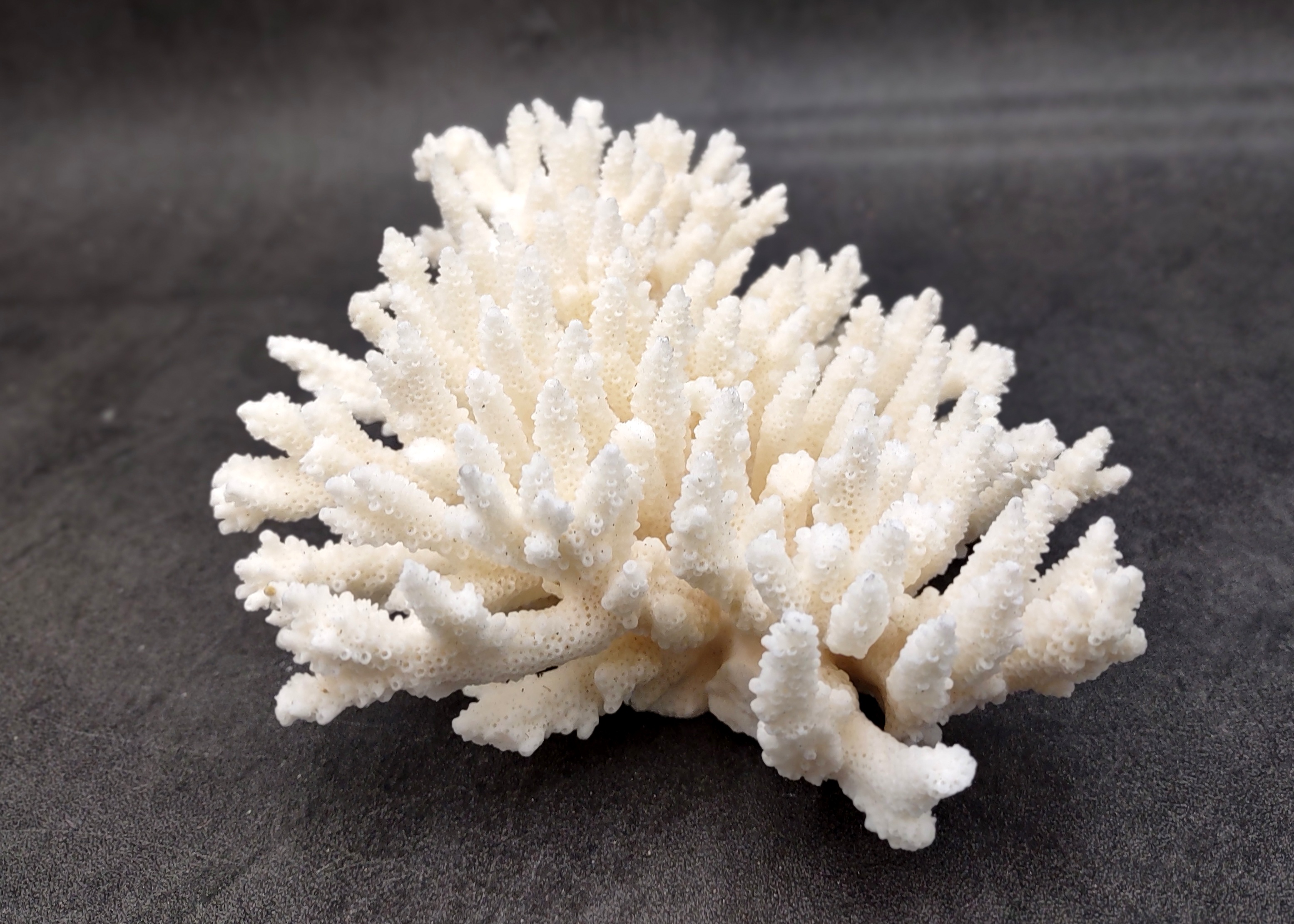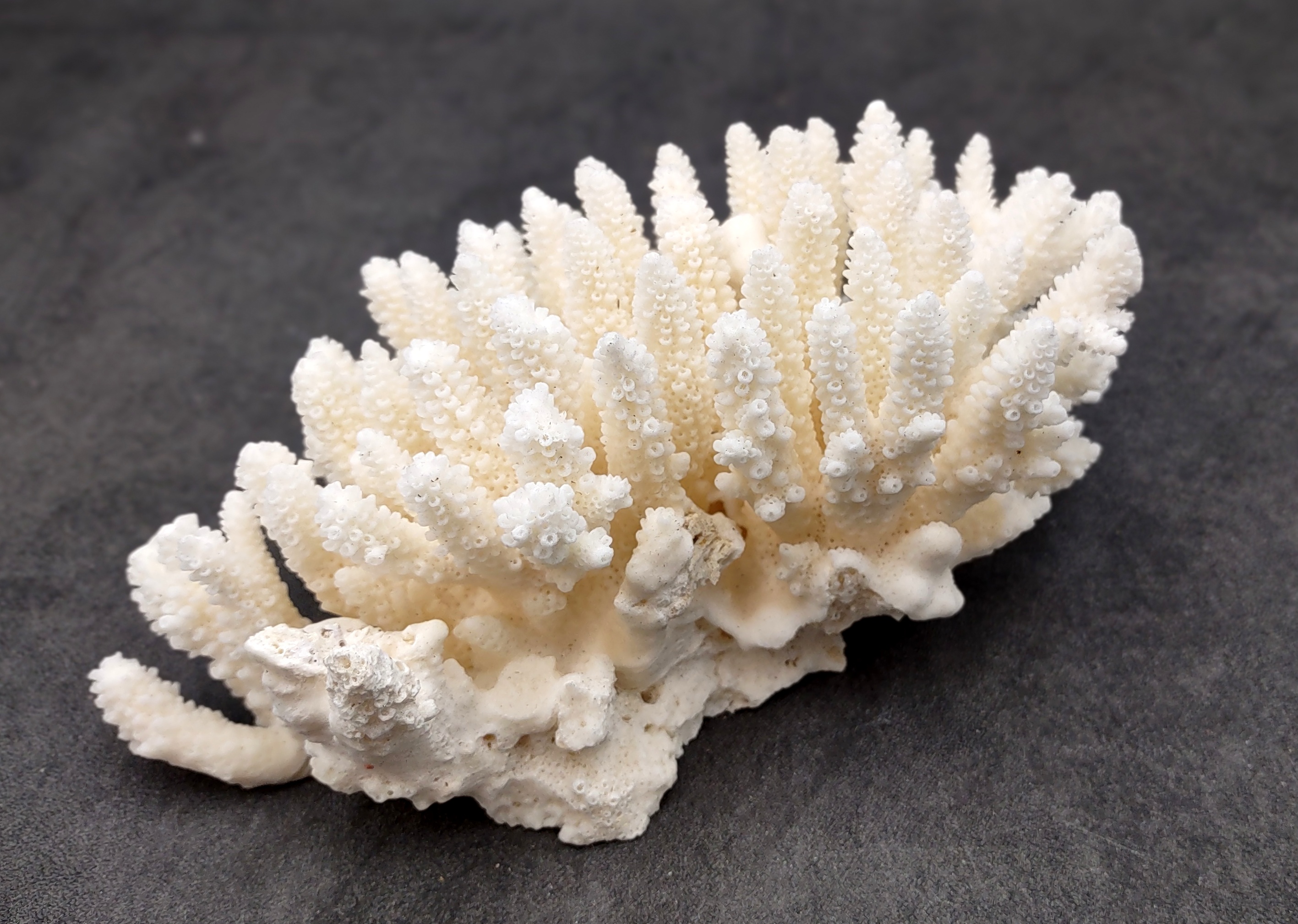 The White Table Coral clusters we sell, also known as Acropora Latistella, have very delicate, thin branches with needle-like tips. Every coral is unique and will vary in form, shape and size (within the range listed below). It has a flat base, so it can sit wherever you choose to place it.