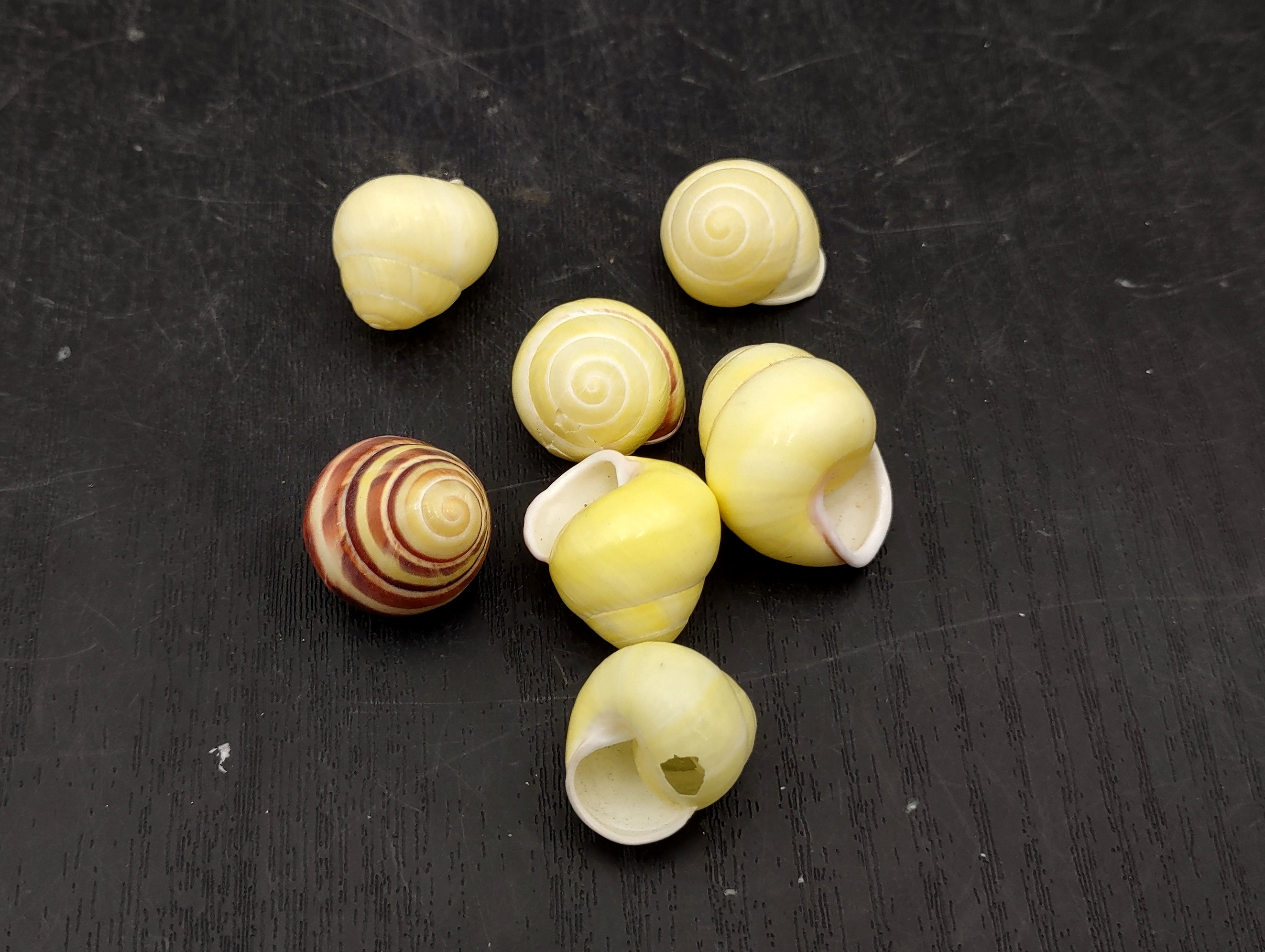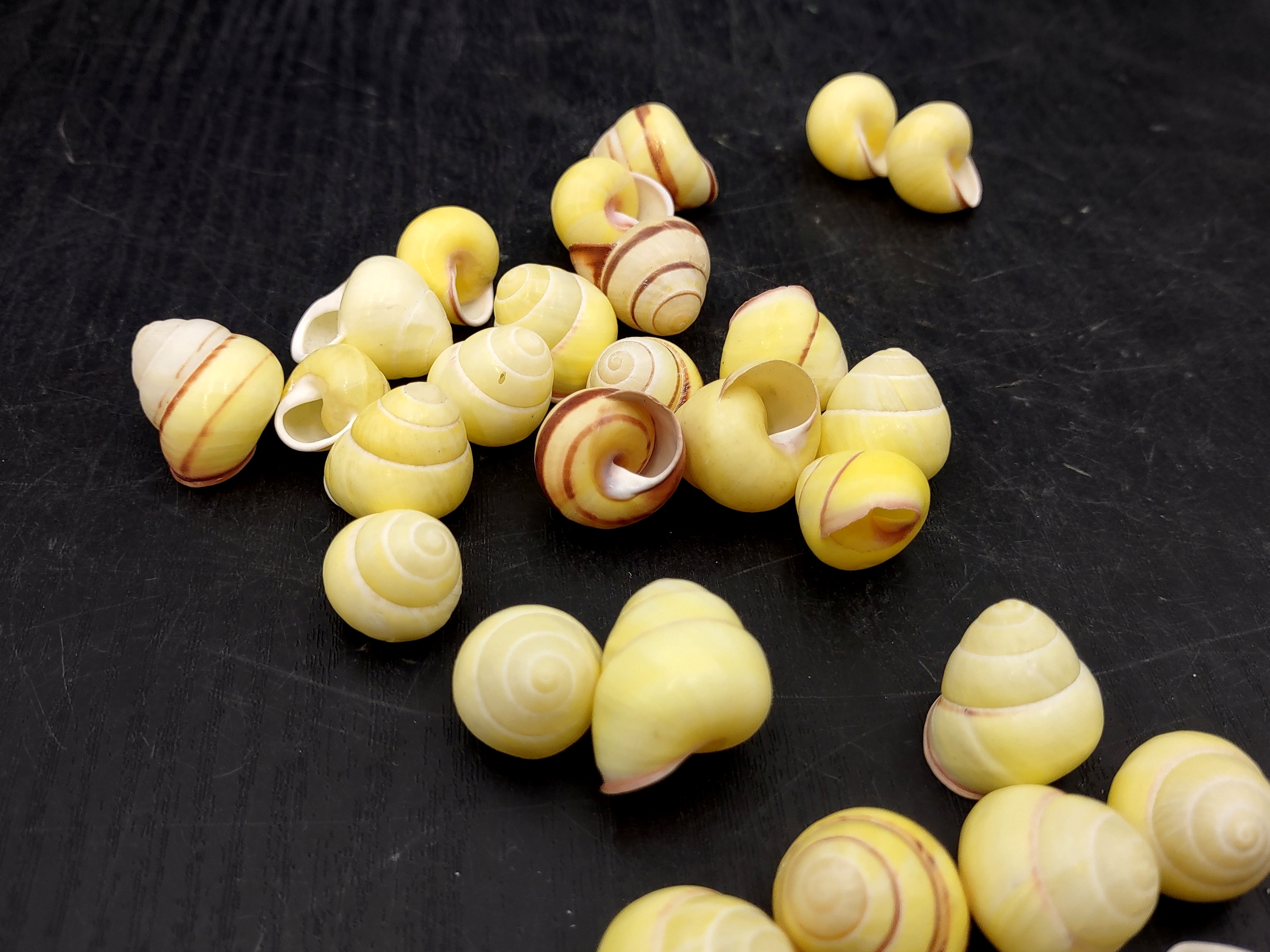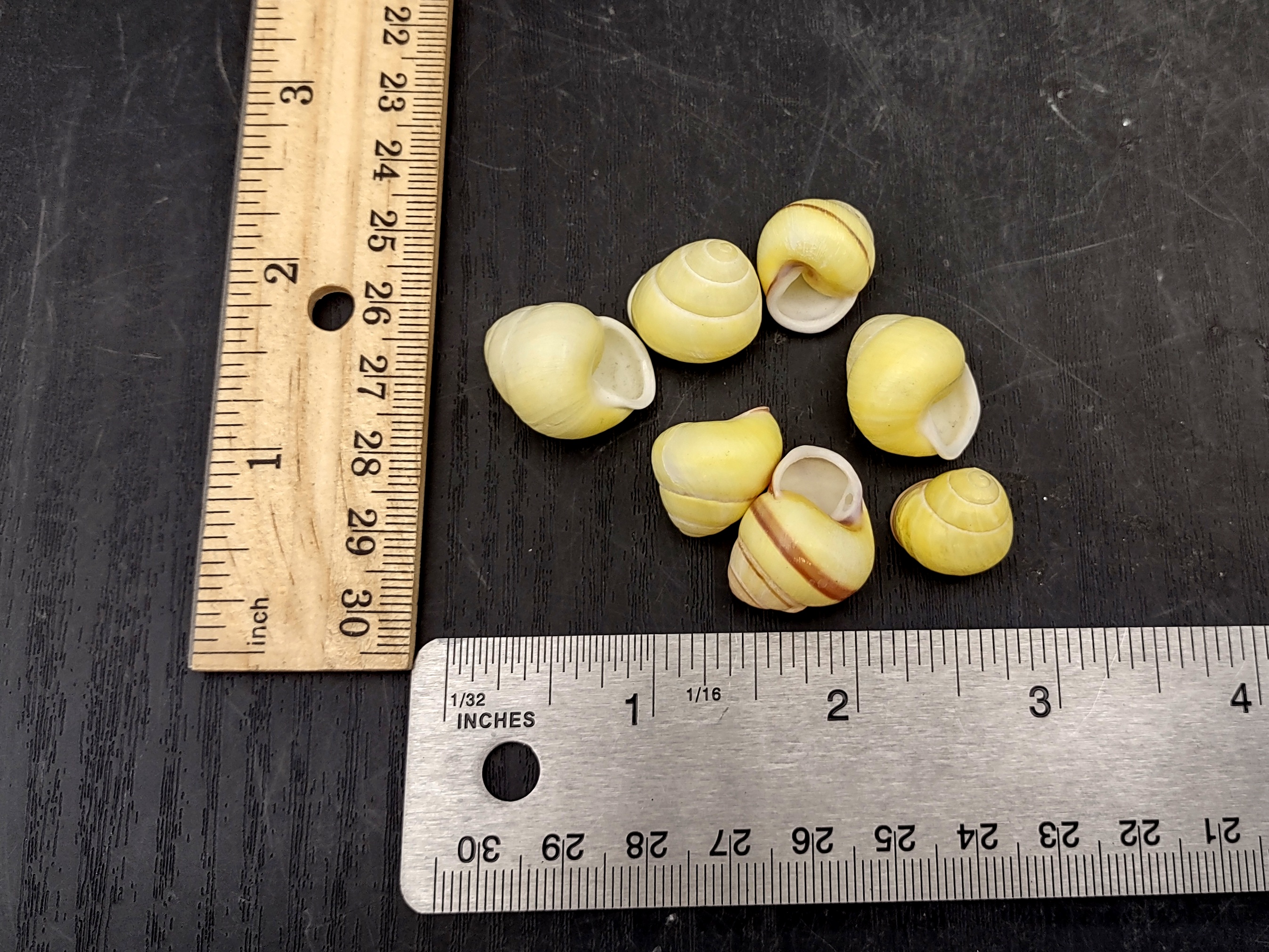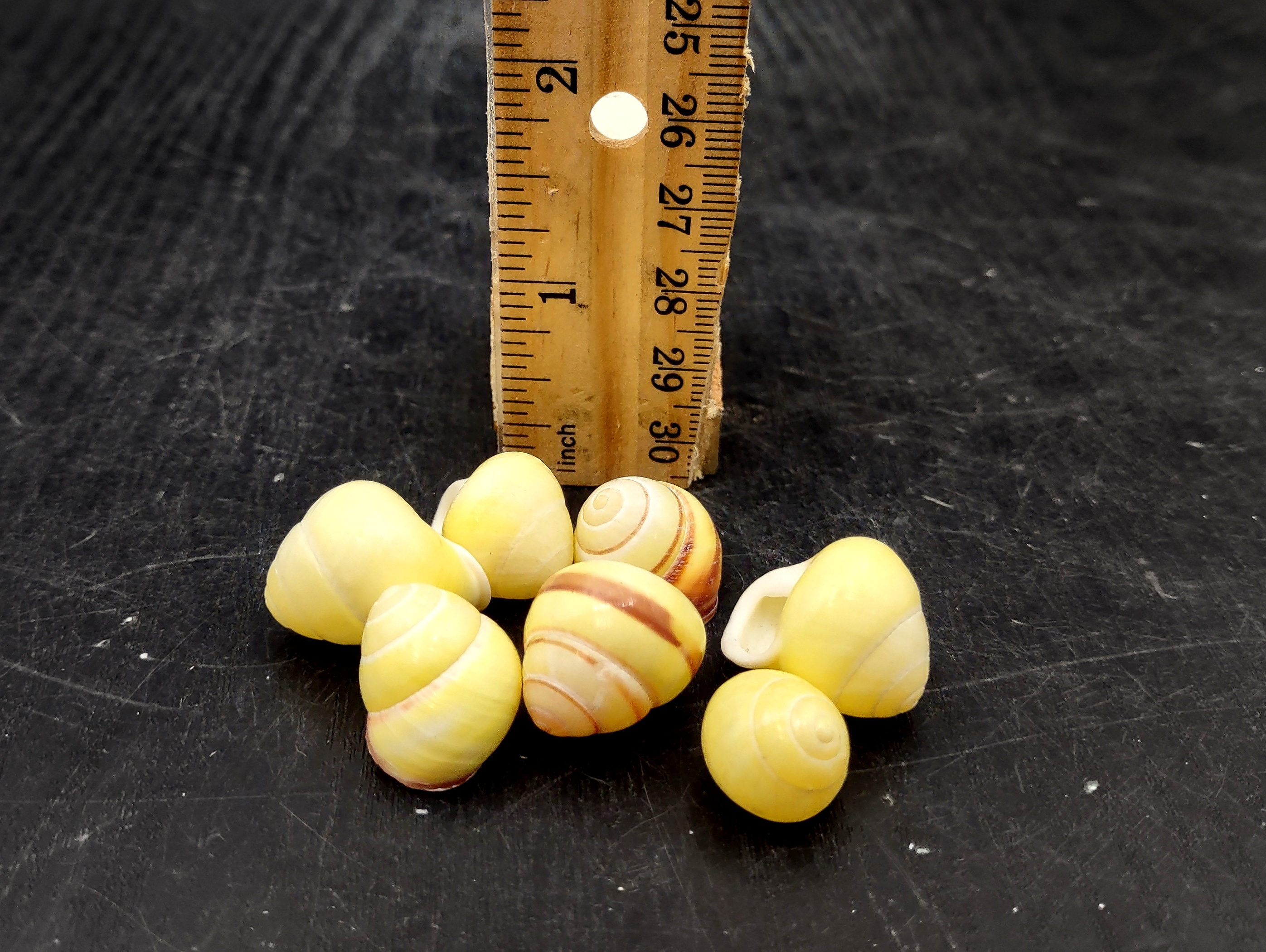 Yellow Banded Snail (7 shells approx. 0.75+ inches) Most adorable snail shell for any coastal collection or display!
